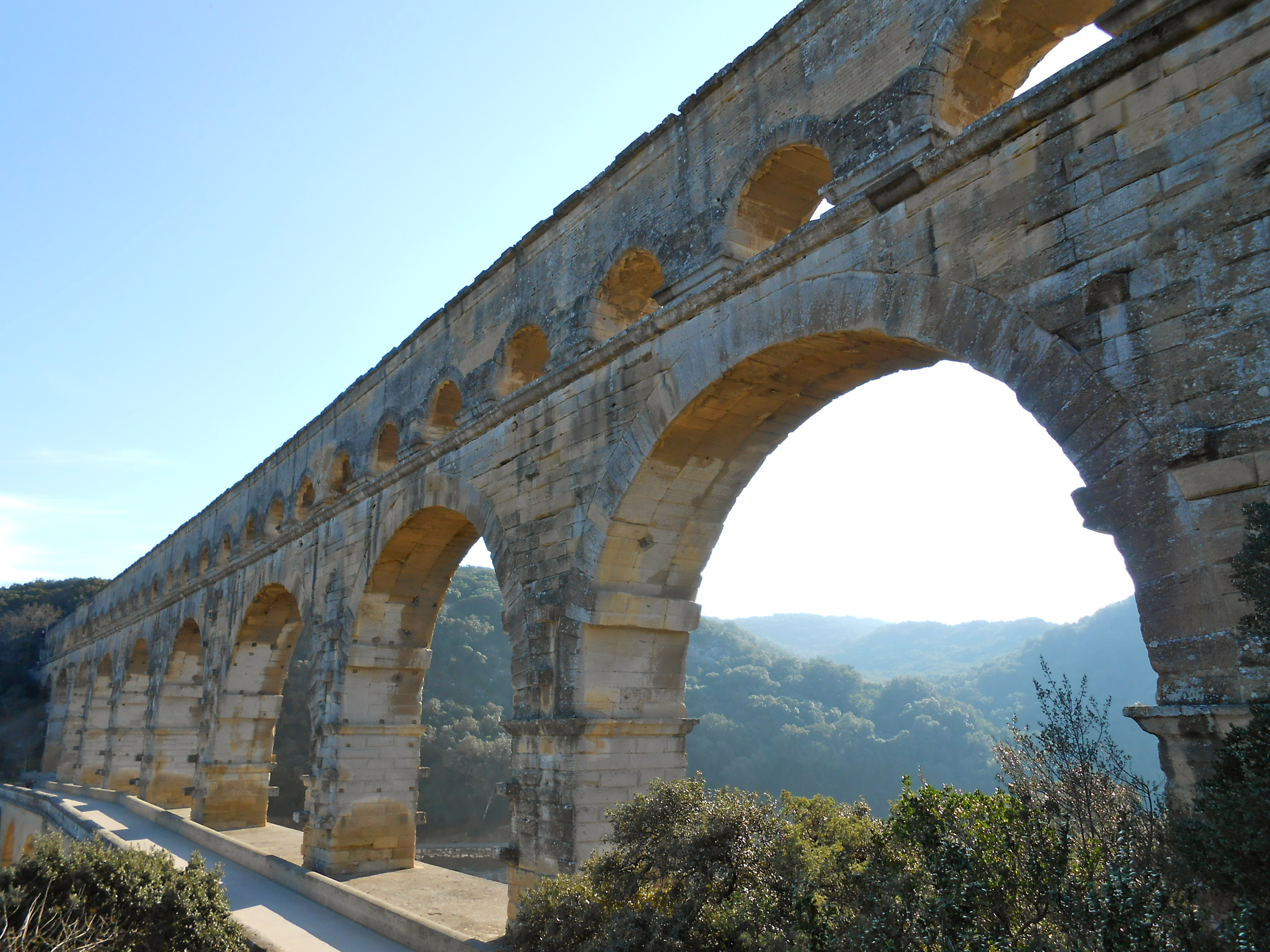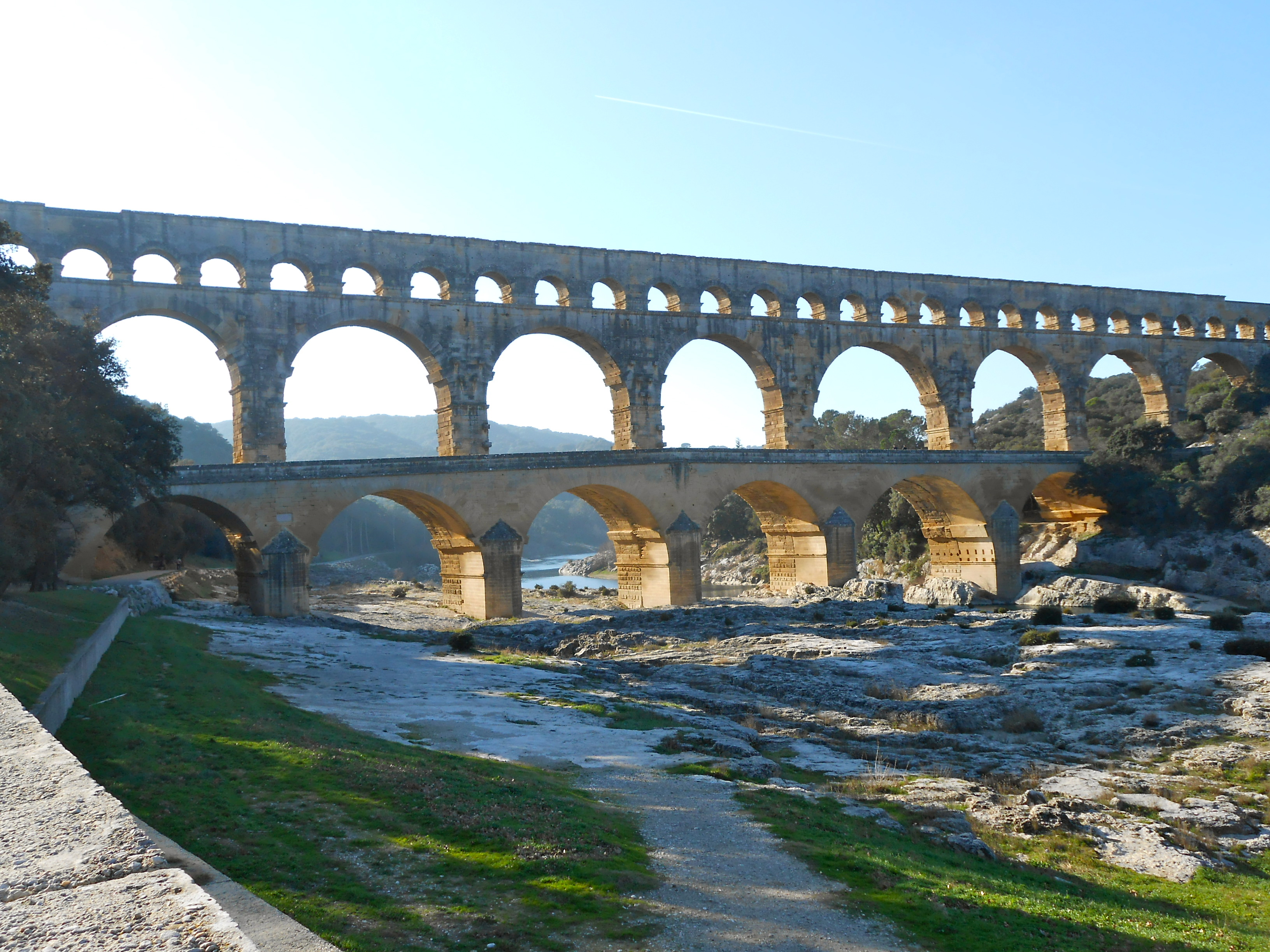Construção romana, erguida no século I a.C, a Pont du Gard é o que restou de um aqueduto e de uma ponte. O aqueduto trazia água de Uzès até Nîmes na travessia do Rio Gardon.