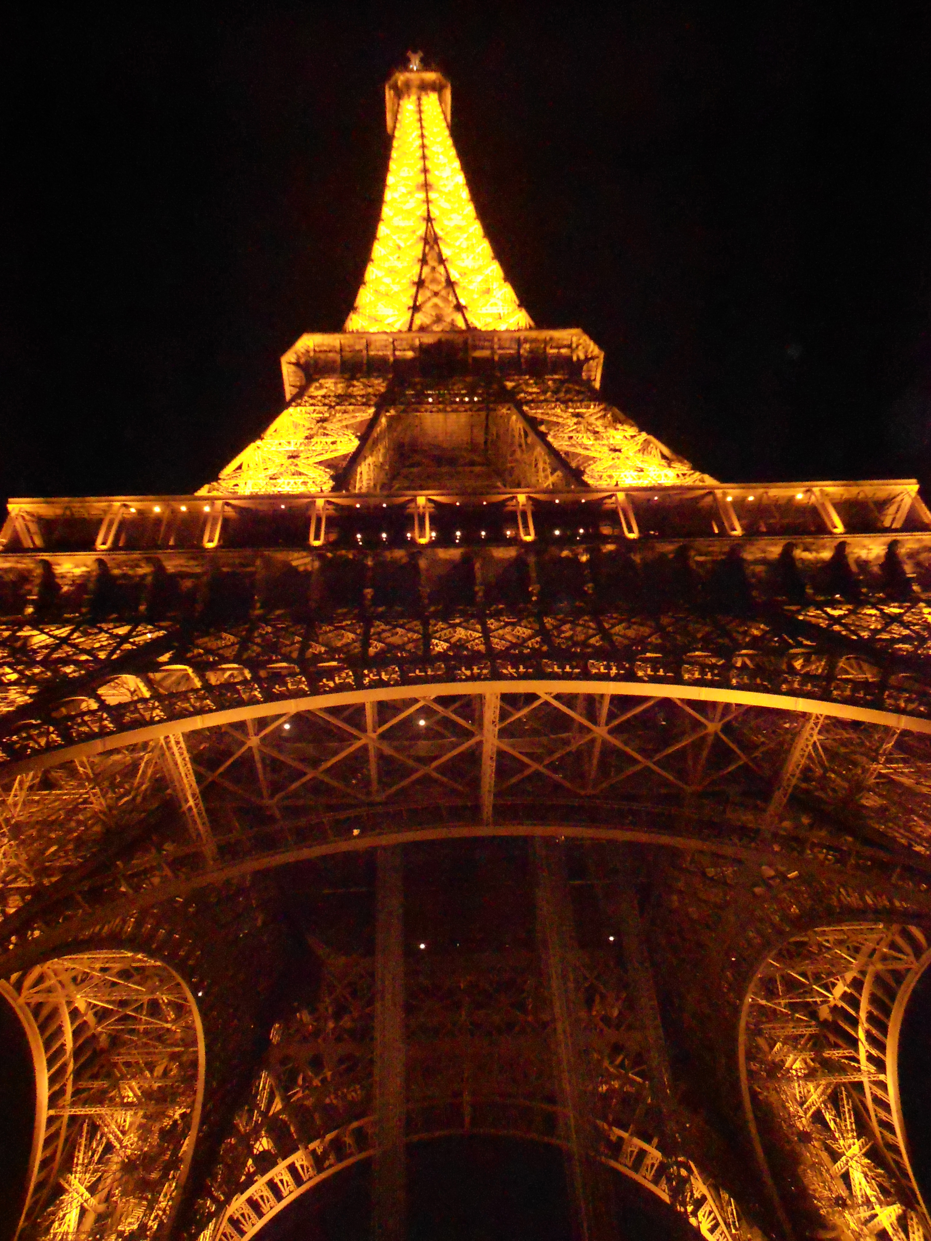 Em 2012, decidimos subir a Torre Eiffel à noite, para conferir as luzes piscando na hora cheia. Chegamos na fila depois das nove da noite e a esperamos até às dez horas para acompanhar o show das luzes do segundo nível, porque o último estava superlotado. Simplesmente fantástico.