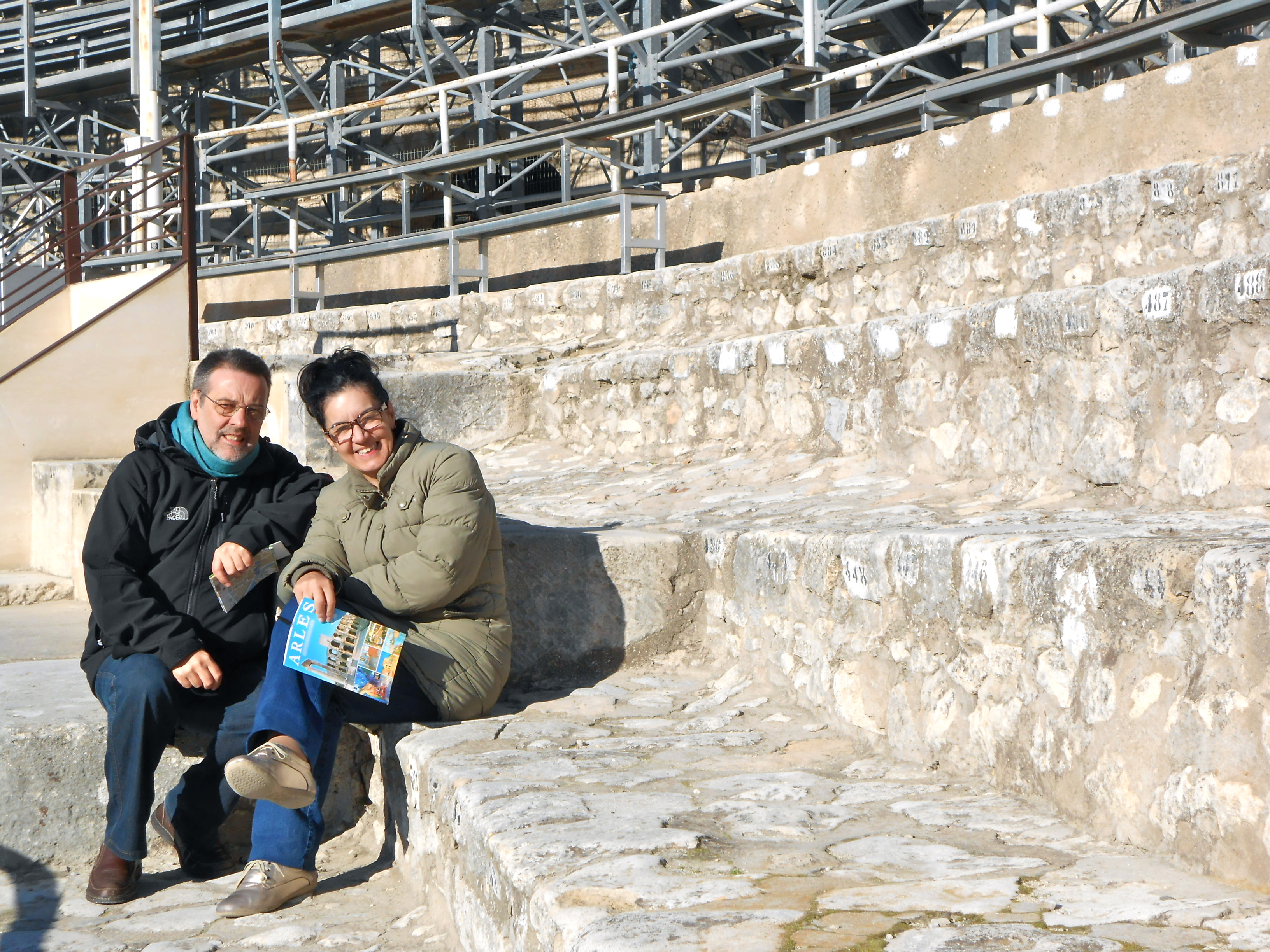 Conhecemos Arles num sábado. A viagem de trem entre Marselha e a cidade, às margens do Rio Rodano, durou cerca de uma hora. Pegamos um micrônibus para ir da estação até o início do Centro Histórico, sem custo algum.