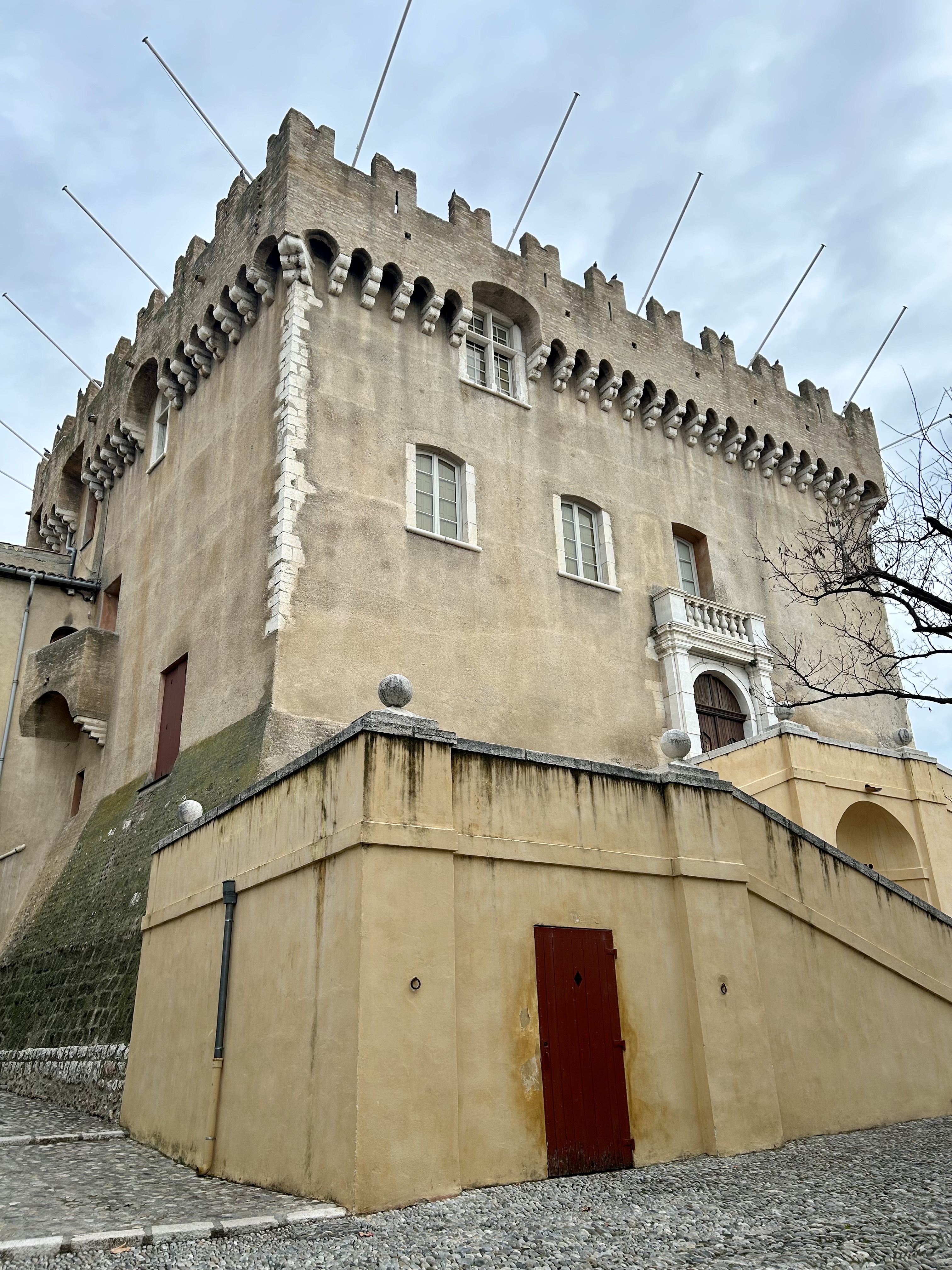 O Castelo é um palácio fortificado erguido no mesmo local de uma fortaleza anterior ocupada pelos gregos e pelos romanos. Foi construído em 1309 por Rainier Grimaldi, um almirante francês. Seria um parente distante dos Grimaldi do Principado de Mônaco.
