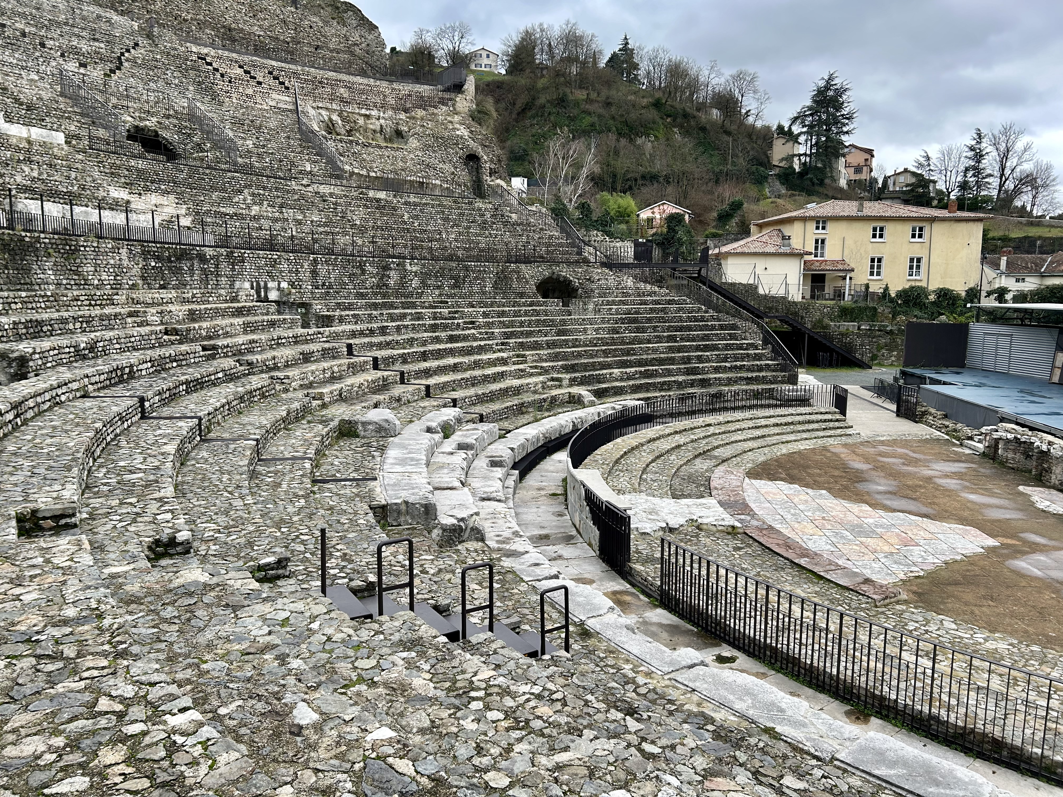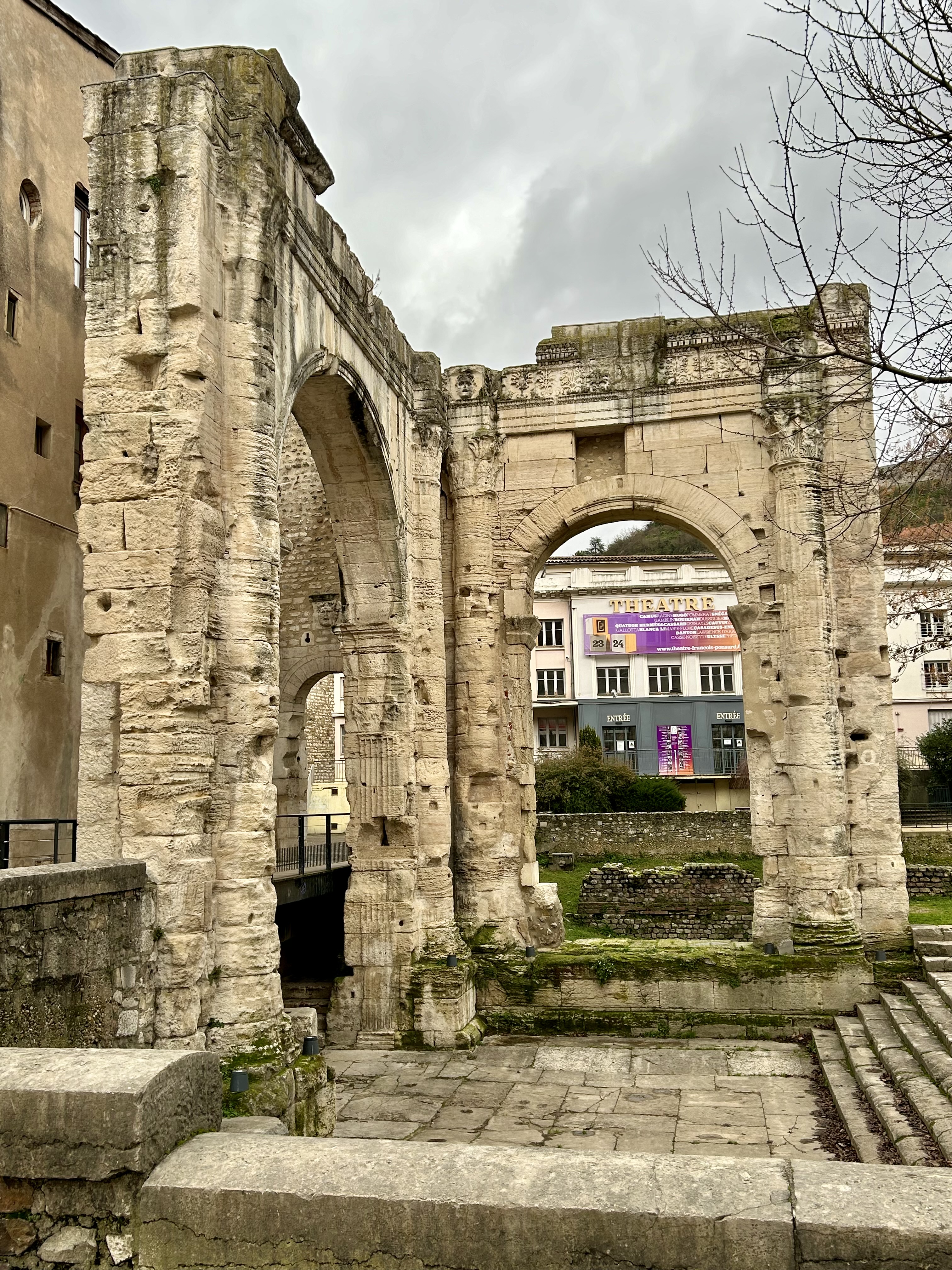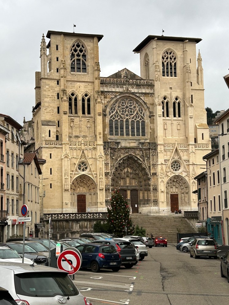 Com cerca de 30 mil habitantes, Vienne é a porta de entrada para o Vale do Rio Rhône (Ródano) e fica a cerca de 30 quilômetros ao sul de Lyon, entre rios e colinas. A viagem é por um vale lindo, mas fazia frio demais no domingo, dia 7/01/2024, com a temperatura em torno de 0 grau, situação que piorava em alguns momentos por causa do vento.
