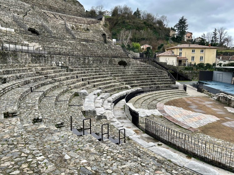 Construído entre os anos 40 e 50 depois de Cristo (dC), o teatro tem a forma semicircular da colina Pipet contra a qual está apoiado. Este momento era dedicado ao entretenimento e à glória de Roma. Representa um dos vestígios mais importantes de toda a Gália Romana.