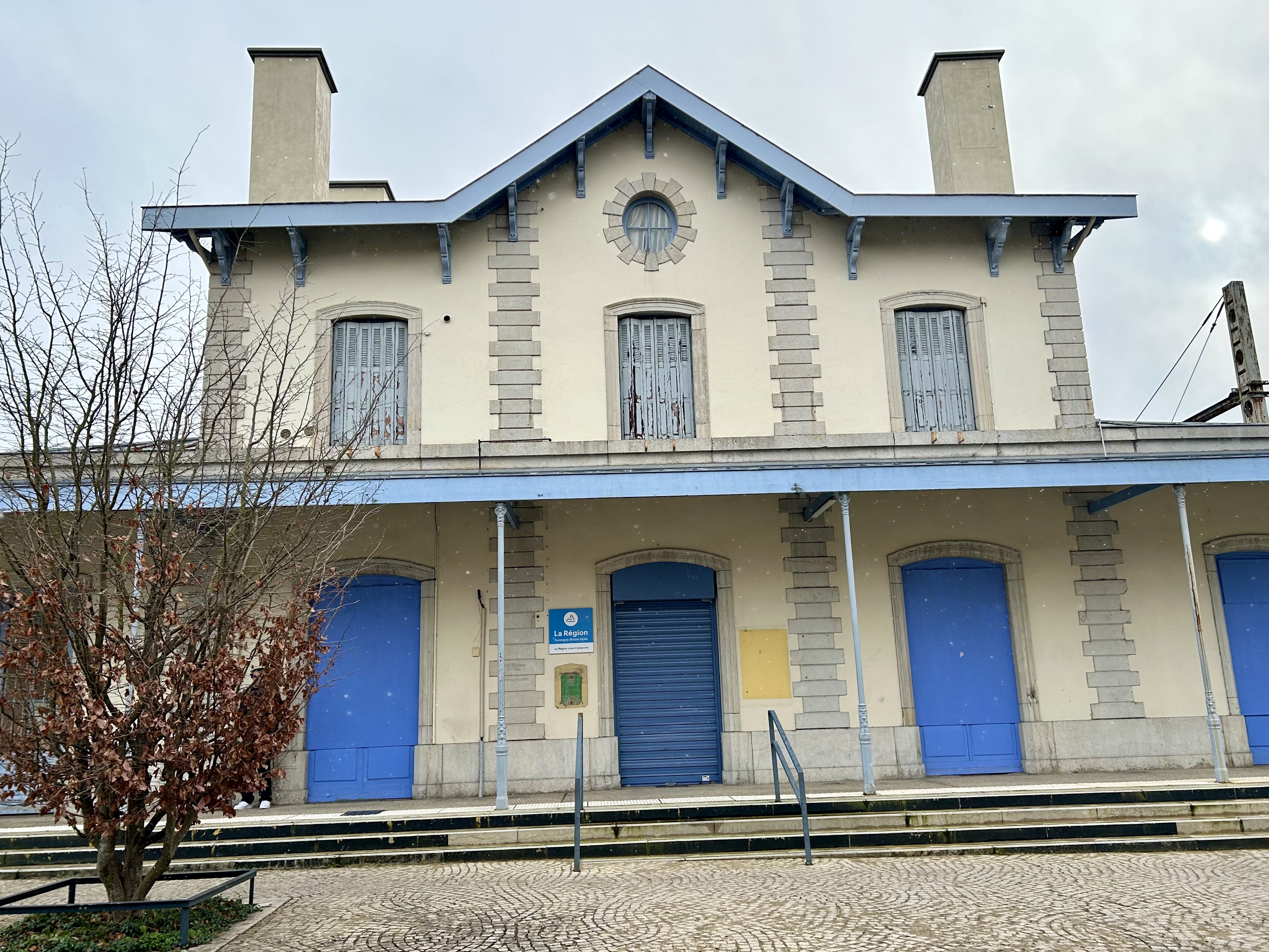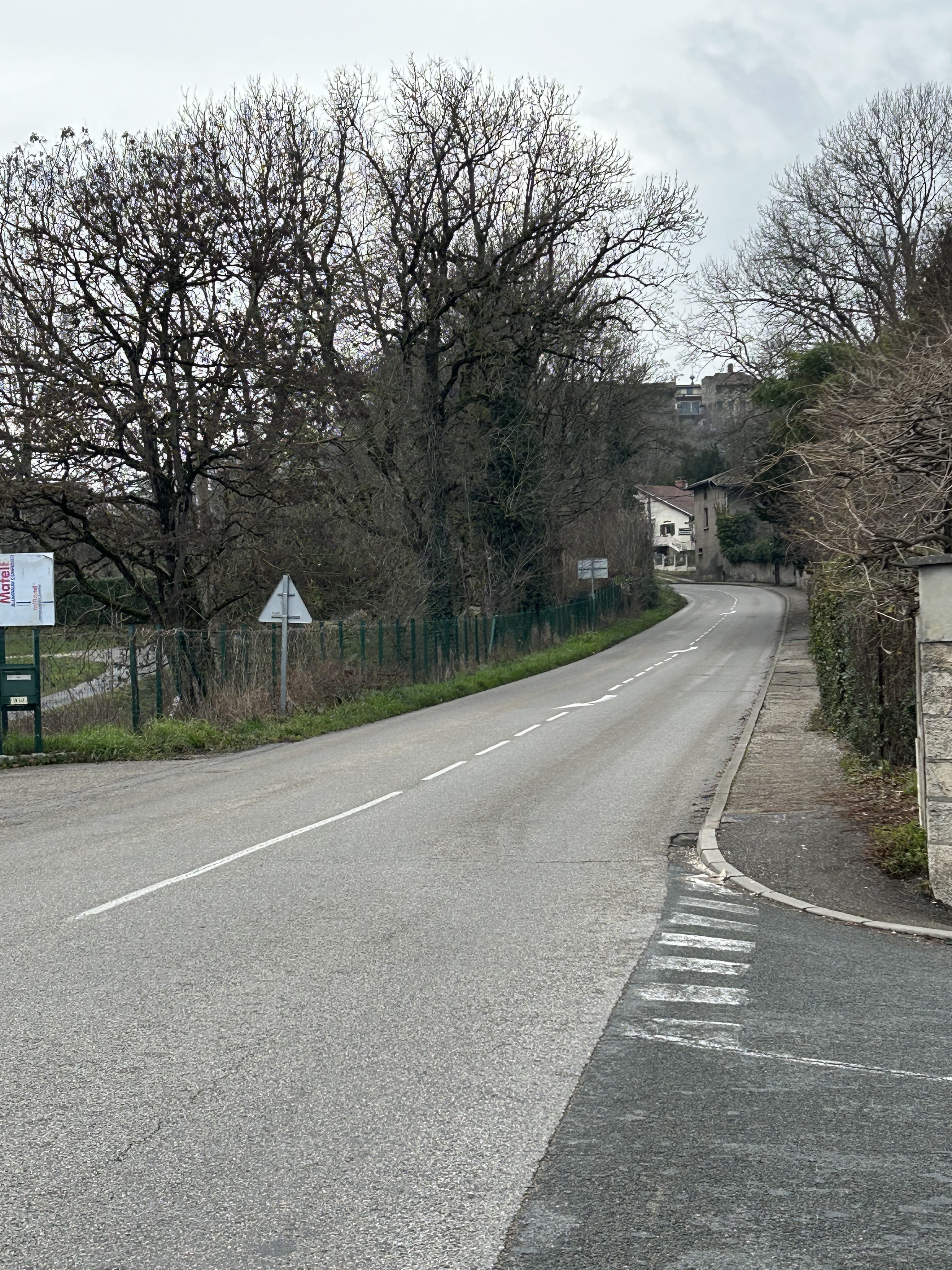 Ao descer na Gare de Meximieux, fique atento porque não existe nenhuma sinalização indicando qual a direção a seguir. Por intuição, seguimos em frente, na direção ao centro onde esperávamos encontrar alguma indicação.