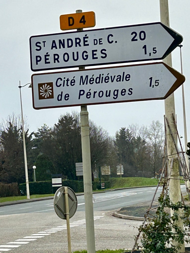 Chegamos próximo da uma da tarde e, em razão do almoço e do frio intenso, havia poucas pessoas nas ruas da cidade de Meximieux, que tem menos de 10 mil moradores. Encontramos dois jovens na rua e eles mostraram o caminho que deveríamos seguir. Depois dos 700 metros de caminhada é possível avistar as casas de Pérouges, localizada em uma colina. No acesso por onde entramos, um mapa revelava as ruas da cidadela, que conta com 1,2 mil moradores.