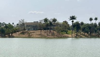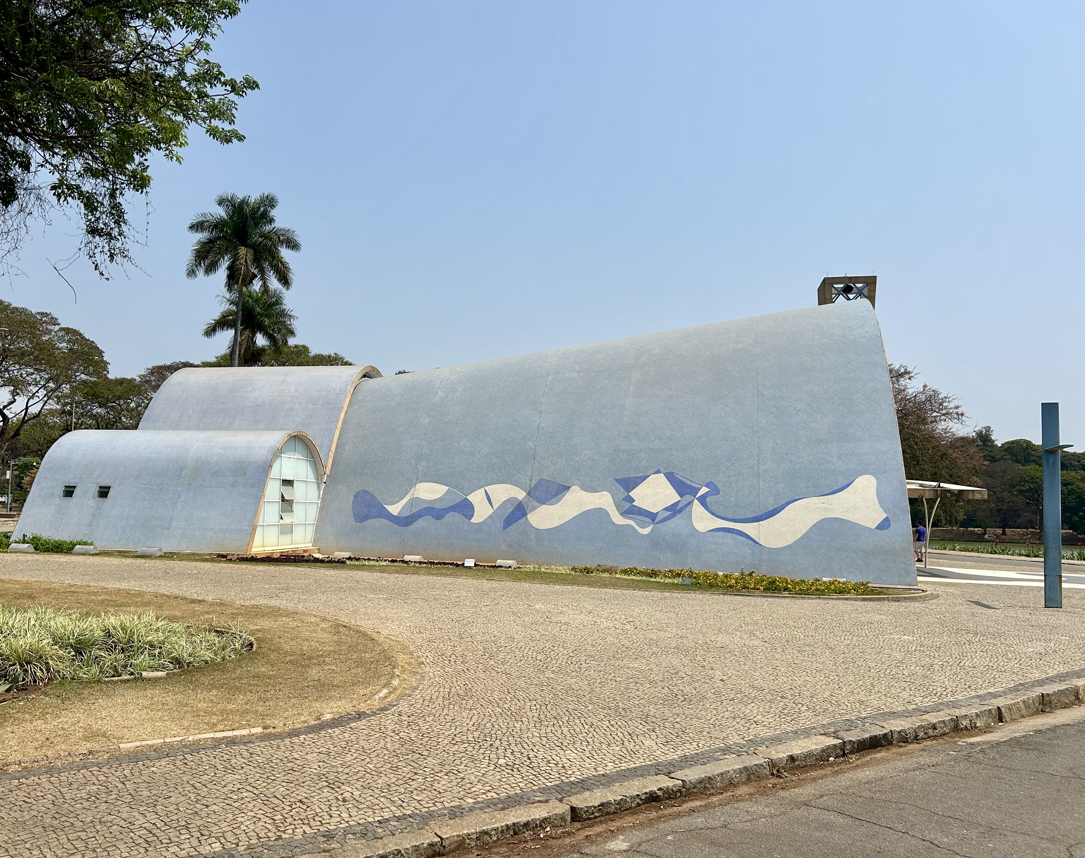 Da Igreja até a Casa são mais de 2 quilômetros de caminhada às margens da lagoa, sob uma temperatura acima dos 30º. Obviamente, não percorremos toda a extensão de 18 quilômetros da lagoa. A visita a outros dois prédios do complexo criados por Niemeyer, o Iate Tênis Clube (passamos na frente quando seguíamos para a Casa do Baile) e o Cassino (atual Museu de Arte da Pampulha), ficaram para a próxima visita a BH.