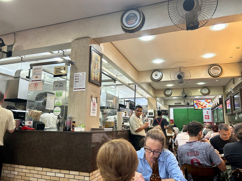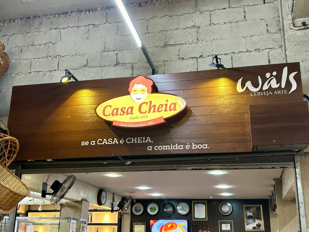 O Mercado é um local para passar boa parte do dia. Almoçamos no restaurante Casa Cheia, sempre lotado e com fila de espera, e saboreamos três pratos típicos das receitas mineiras com nomes estranhos.