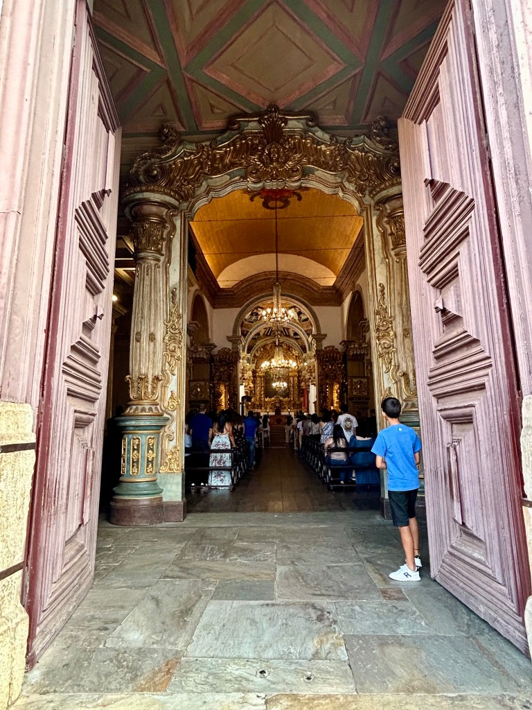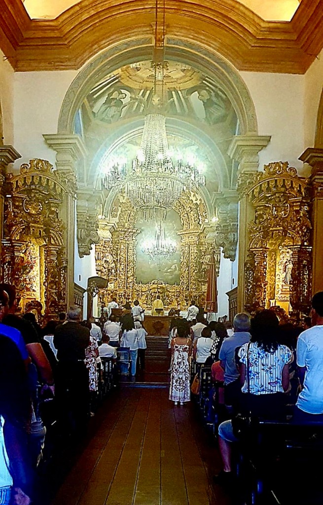 Outro templo fascinante é a Catedral Basílica Nossa Senhora de Assunção ou Catedral Basílica da Sé, construída a partir de 1709, que fica no início da Rua Direita, que tem um belo conjunto de sobrados. Olhamos da porta, sem entrar, porque havia missa e a igreja estava lotada.