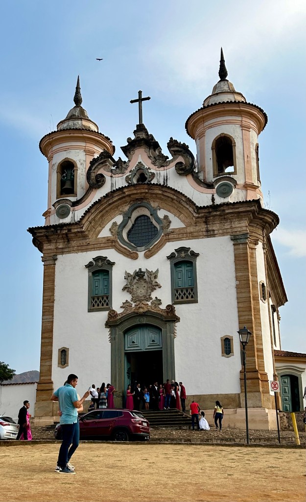 No outro lado da rua fica a Igreja de Nossa Senhora do Carmo, cujas obras começaram em 1784. Um incêndio, em 1999, destruiu parte das pinturas do teto e dois altares. No dia da nossa visita, um sábado depois das 17h, estava acontecendo um casamento no templo.
