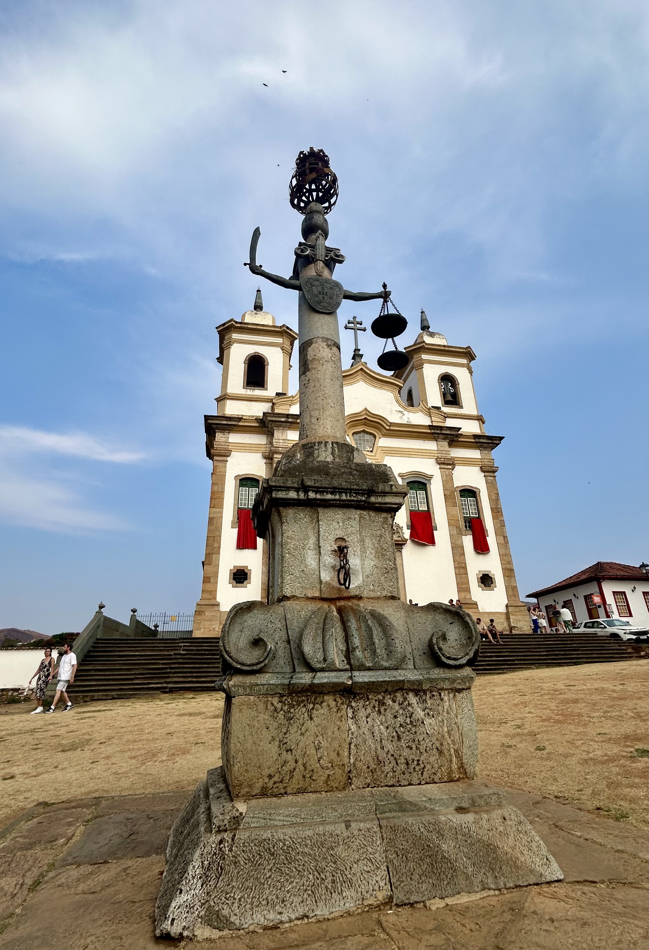 Diante da praça fica o prédio da Câmara Municipal de Mariana, antiga Casa de Câmara e Cadeia. Conserva a estrutura que já foi destinada à senzala, casa de fundição de ouro e cadeia no andar de baixo e Fórum e Prefeitura Municipal no andar de cima, o que representava na época símbolo de poder e autonomia municipal. No centro da praça tem um pelourinho construído em 1970, porque o original foi demolido em 1870 – era outro símbolo de poder do Estado e local para punições públicas para criminosos e escravos.