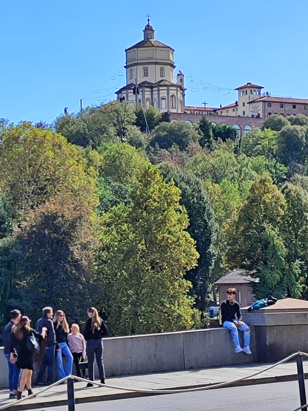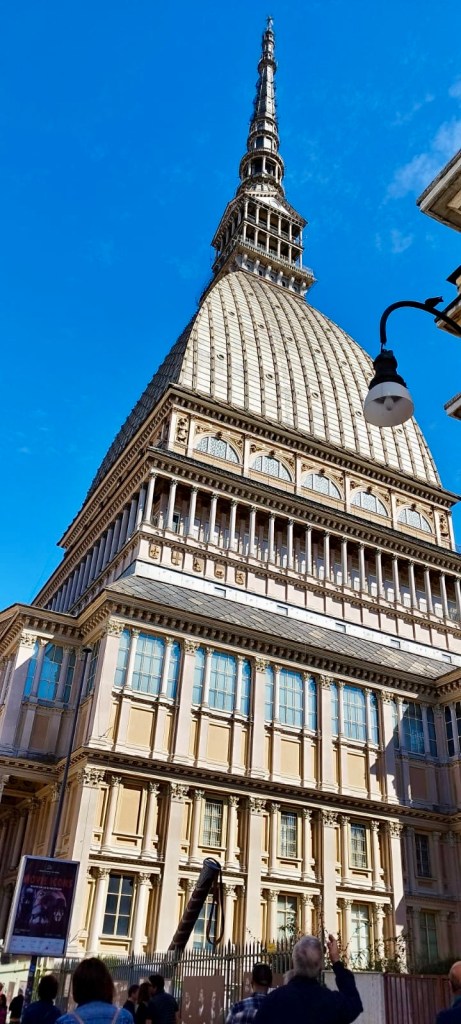 Turim é chamada de “Paris Italiana”, graças ao charme dos seus cafés, museus, monumentos e praças. Em uma das ruas encontramos uma grande fila de turistas. Era para subir até o alto do Mole Antonelliana, de onde é possível apreciar toda a cidade e também as montanhas dos Alpes. Não conseguimos subir porque não havia mais tíquetes para o elevador (não há vagas até janeiro de 2025), e a escadaria de 500 degraus estava fora de questão.
