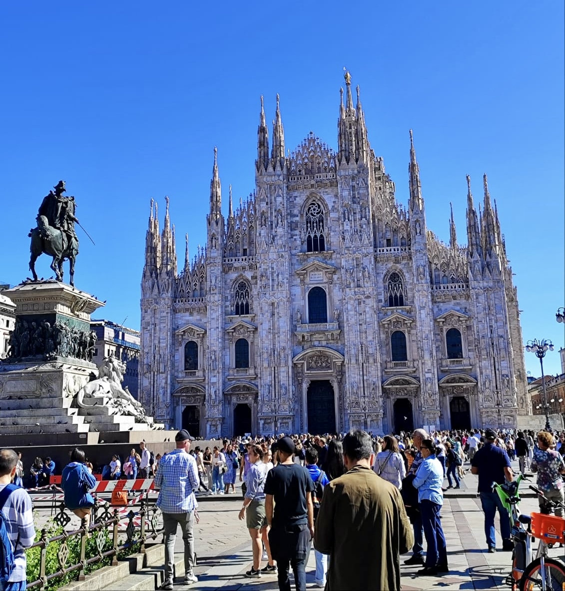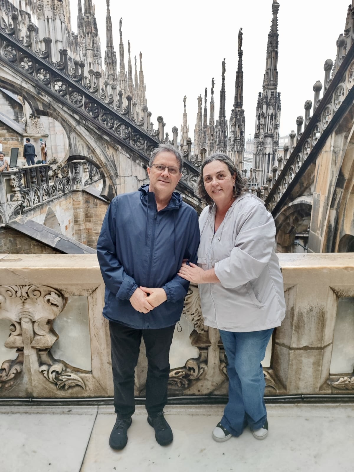 O primeiro passeio, comprado quando ainda estávamos no Brasil, foi uma visita aos telhados da famosa Duomo de Milão, uma das mais importantes e imponentes catedrais góticas do mundo. As filas para comprar ingresso e entrar no templo são grandes o tempo todo, da manhã ao começo da noite.