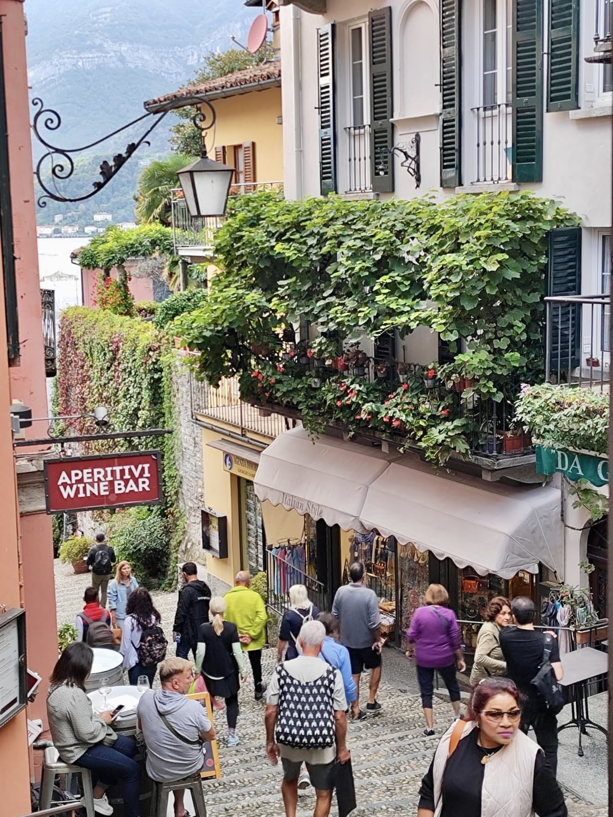A pequena Bellagio é considerada por muitos como a mais bela cidade do Lago de Como. E não é difícil entender o motivo. As ruas são uma graça, cheias de flores (apesar de estar começando o outono). Tudo é muito bem cuidado, mesmo com o movimento incessante de turistas de um lado para o outro. No verão, acredito, deve ser um caos. As ruas são estreitas, há lojinhas de lembranças, muitas confeitarias maravilhosas, lojas de vinhos e restaurantes para todos os bolsos. E há, também, um Centro Histórico muito interessante, com igrejas e edifícios seculares, onde não há muvuca de turistas.
