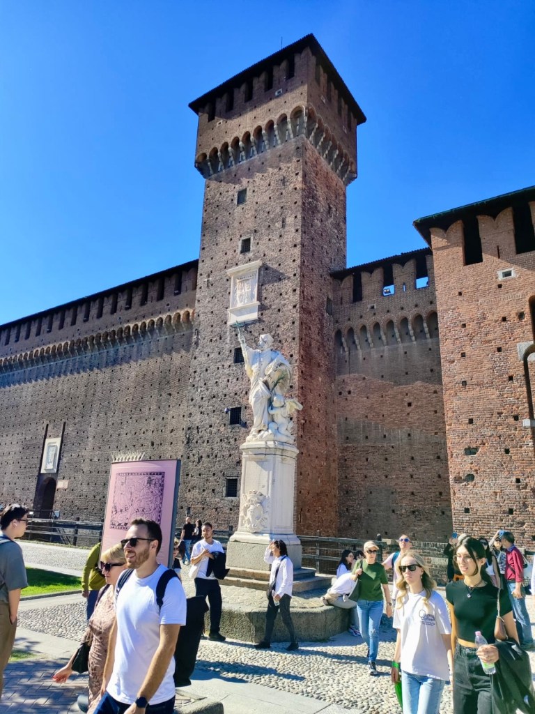 Conhecemos o belo Castelo Sforzesco e sua coleção de pinturas, jantamos numa cantina no movimentado Bairro Navigli, que tem canais de água projetados por Leonardo da Vinci onde é possível fazer passeios de barco e tomar um drink em um dos incontáveis e animados bares.
