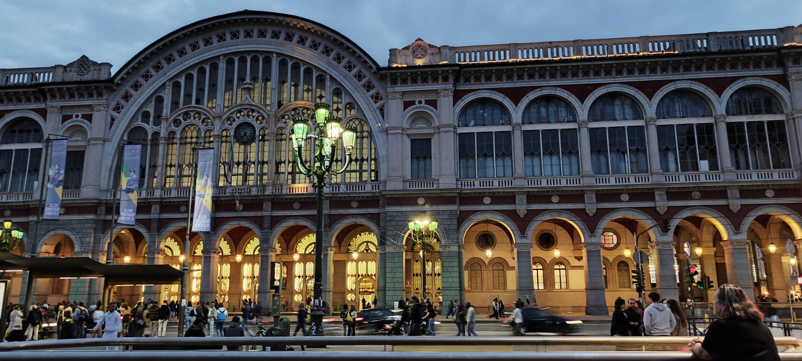 De Milão, fizemos dois bate e volta de trem. O primeiro à cidade de Turim. Fomos de manhã e voltamos à noite. Caminhamos praticamente o dia inteiro pelo belíssimo Centro Histórico, cujo principal destaque é a grandiosa Praça Central e seus ricos palácios. O trem chega na Estação Porta Nova, bem no centro da cidade.