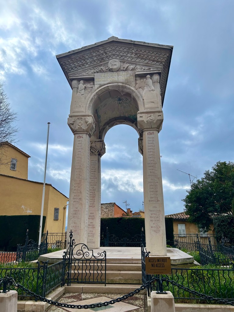 Na frente da Catedral, chama a atenção um monumento em homenagem aos moradores de Grasse que morreram nos combates da Primeira Guerra Mundial, de 1914 a 1918. No meio da tarde, o sol voltou a brilhar.