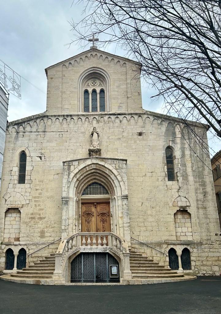 Infelizmente, a Igreja medieval de Notre Dame du Puy, elevada ao status de catedral em 1244, estava fechada durante a nossa visita. O estilo romântico provençal está bem preservado. É considerada patrimônio histórico pelo Ministério da Cultura da França.