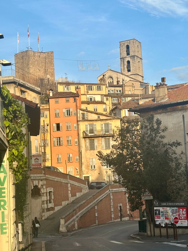 A gare de Grasse fica a mais de 1,5 quilômetro do Centro Histórico. Dá para ir caminhando, mas é uma subida imensa. Haja fôlego. Um ônibus faz a ligação da Gare até o Centro, ao custo de 3 Euros por casal. No fim da tarde, voltamos caminhando até a Gare, porque para baixo todo santo ajuda.