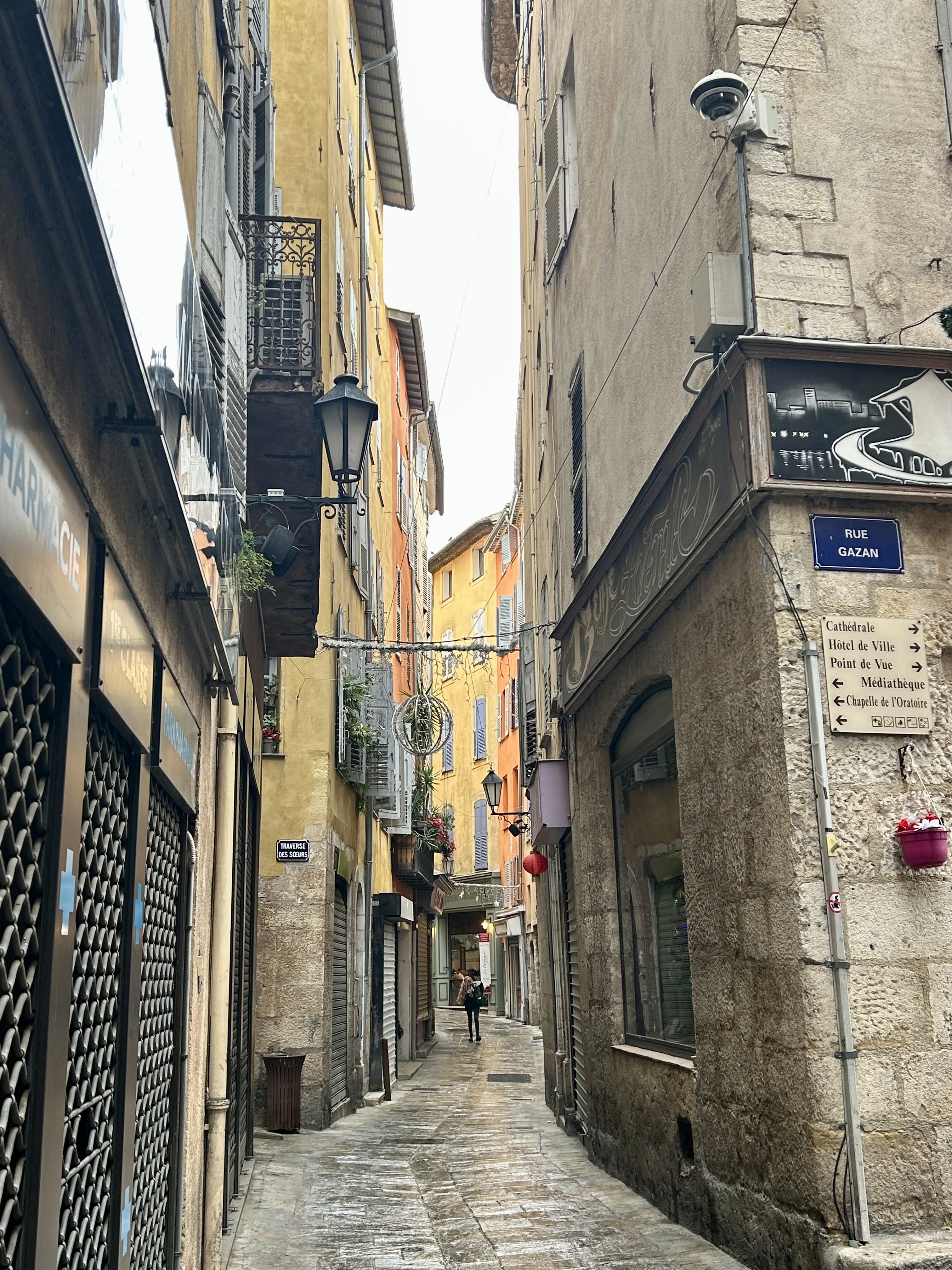A gare de Grasse fica a mais de 1,5 quilômetro do Centro Histórico. Dá para ir caminhando, mas é uma subida imensa. Haja fôlego. Um ônibus faz a ligação da Gare até o Centro, ao custo de 3 Euros por casal. No fim da tarde, voltamos caminhando até a Gare, porque para baixo todo santo ajuda.