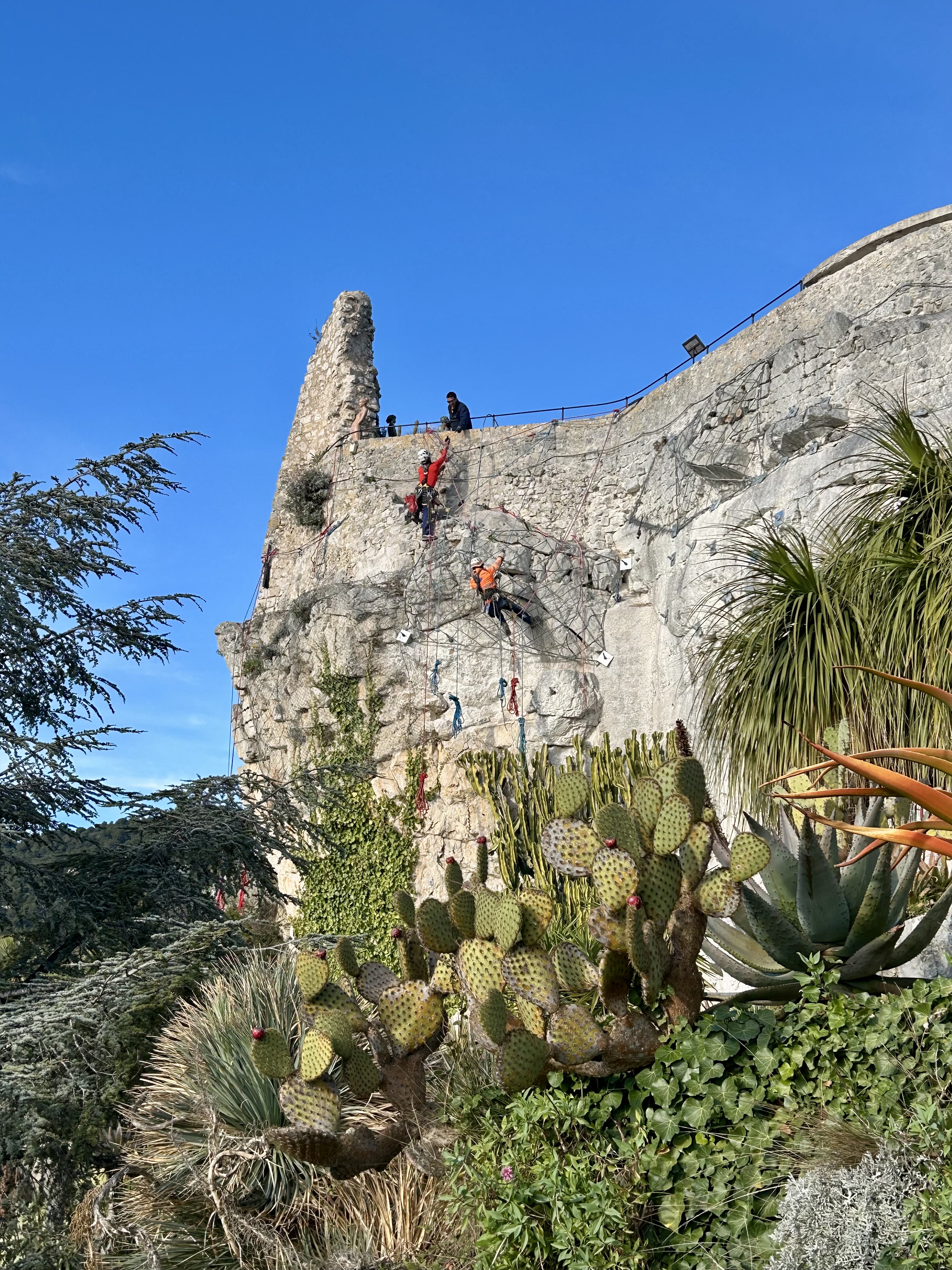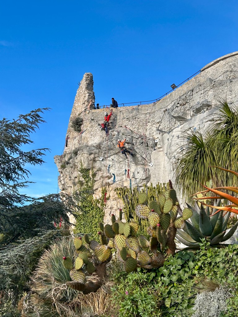 No topo do vilarejo, onde estão as ruínas de um castelo, há o magnífico Le Jardin Exotique a 429 metros acima do nível do mar. O que era um castelo foi desmantelado pelos soldados do rei francês Luís XV em 1706.