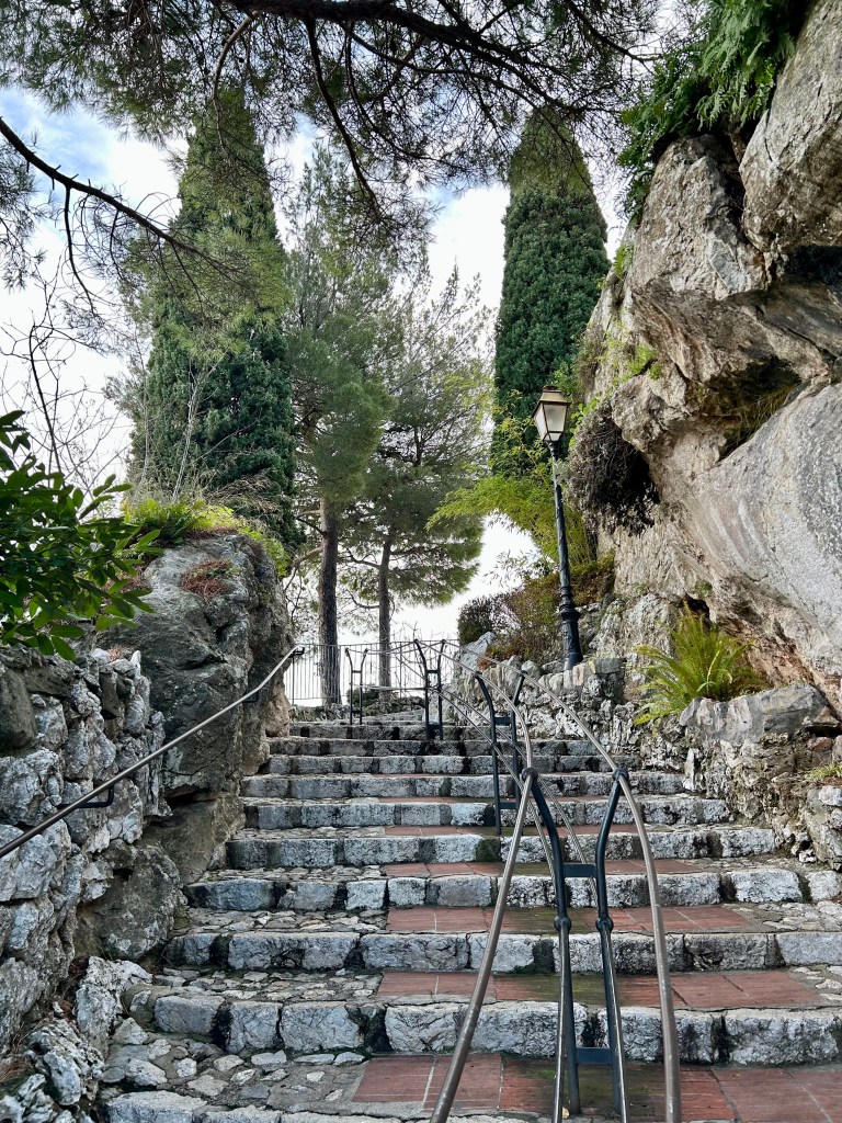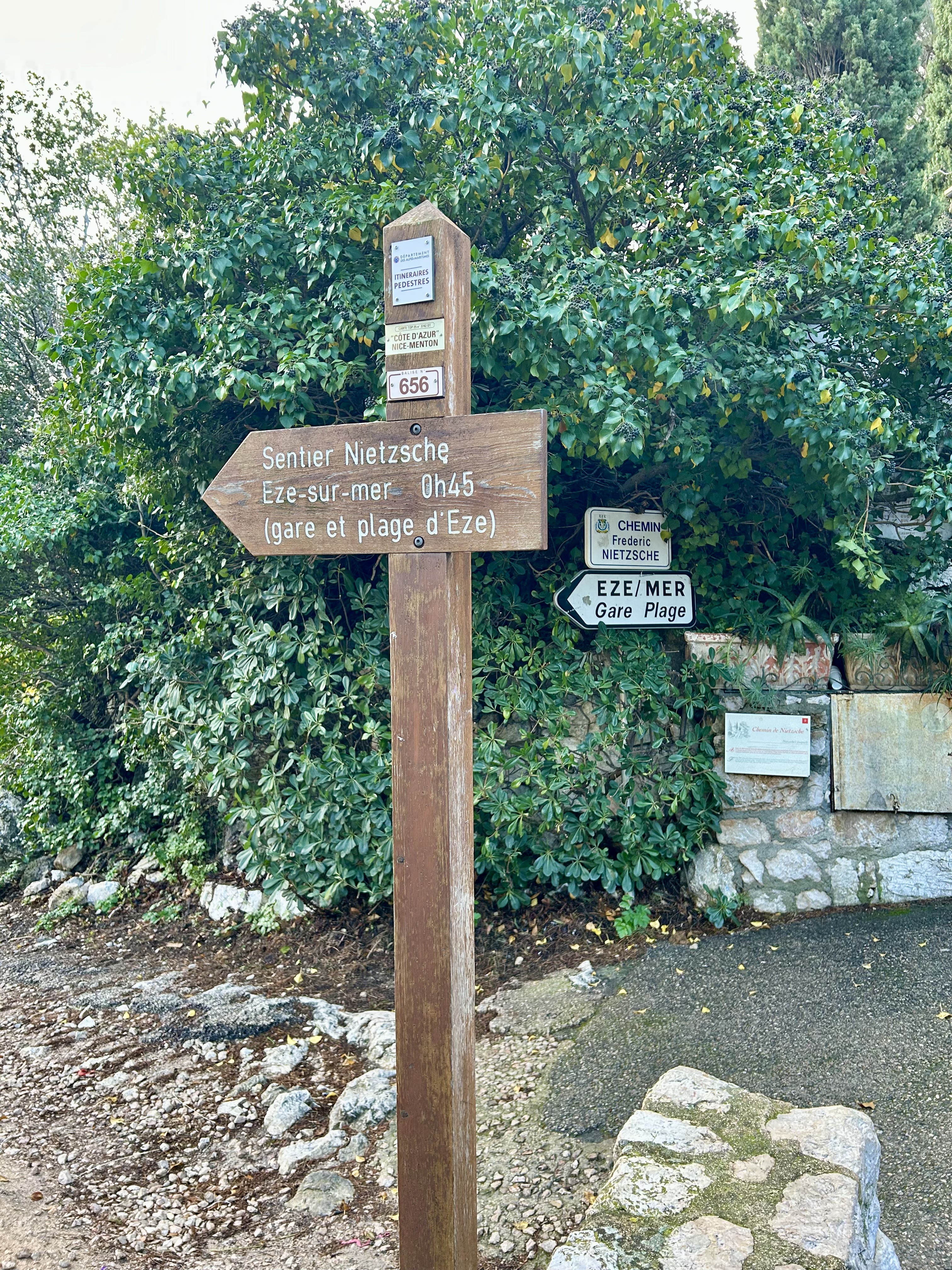 Também dá para ir de trem, mas será necessário enfrentar uma longa subida até o topo da montanha – quase 500 metros acima do nível do mar. Uma caminhada de mais de uma hora. É o chamado “Caminho de Nietzsche”, por onde o filósofo subia e descia o monte, no período em que viveu em Èze e escreveu um dos capítulos do livro “Assim falava Zaratustra”, de acordo com o folheto distribuído na Oficina de Turismo.
