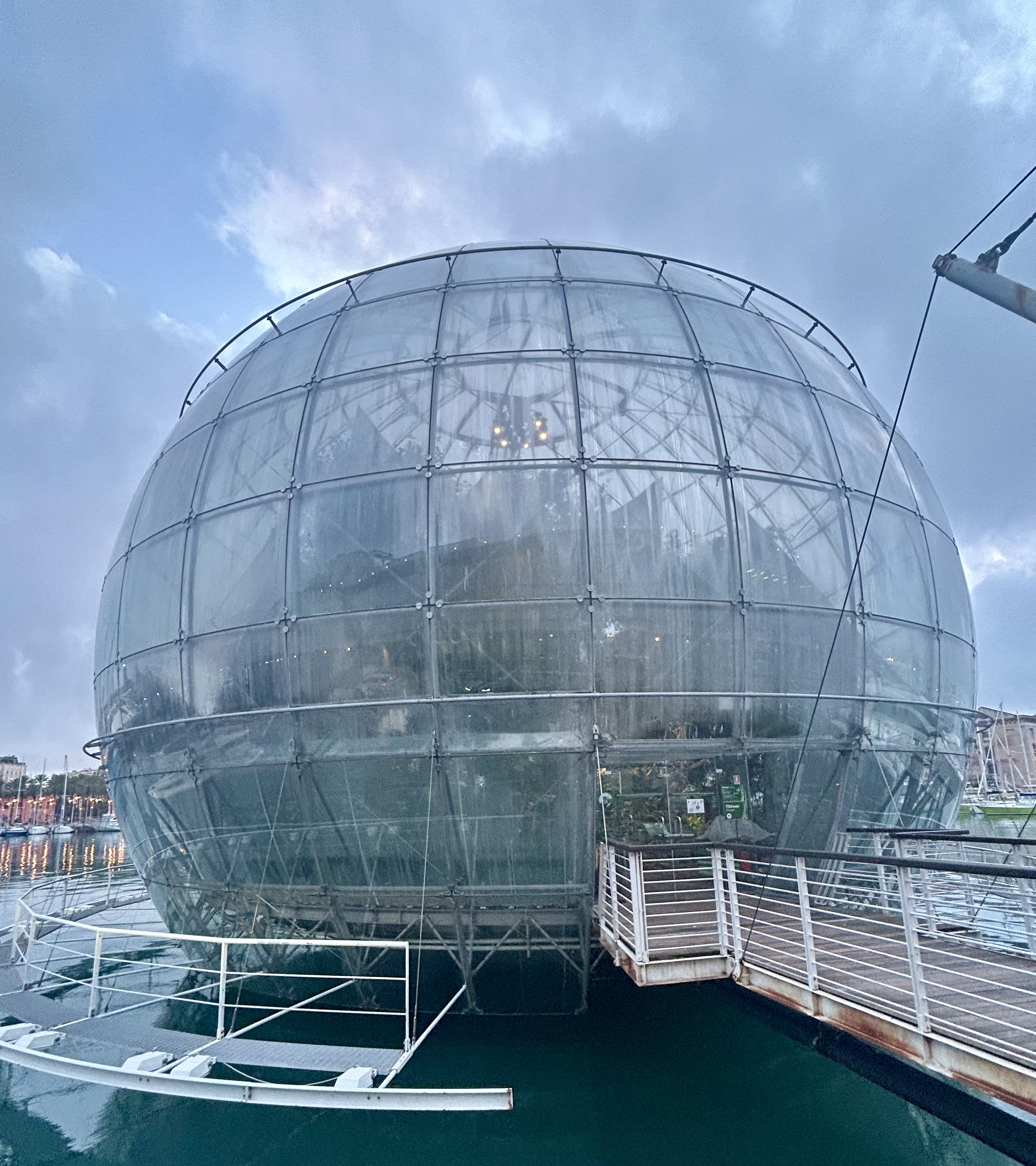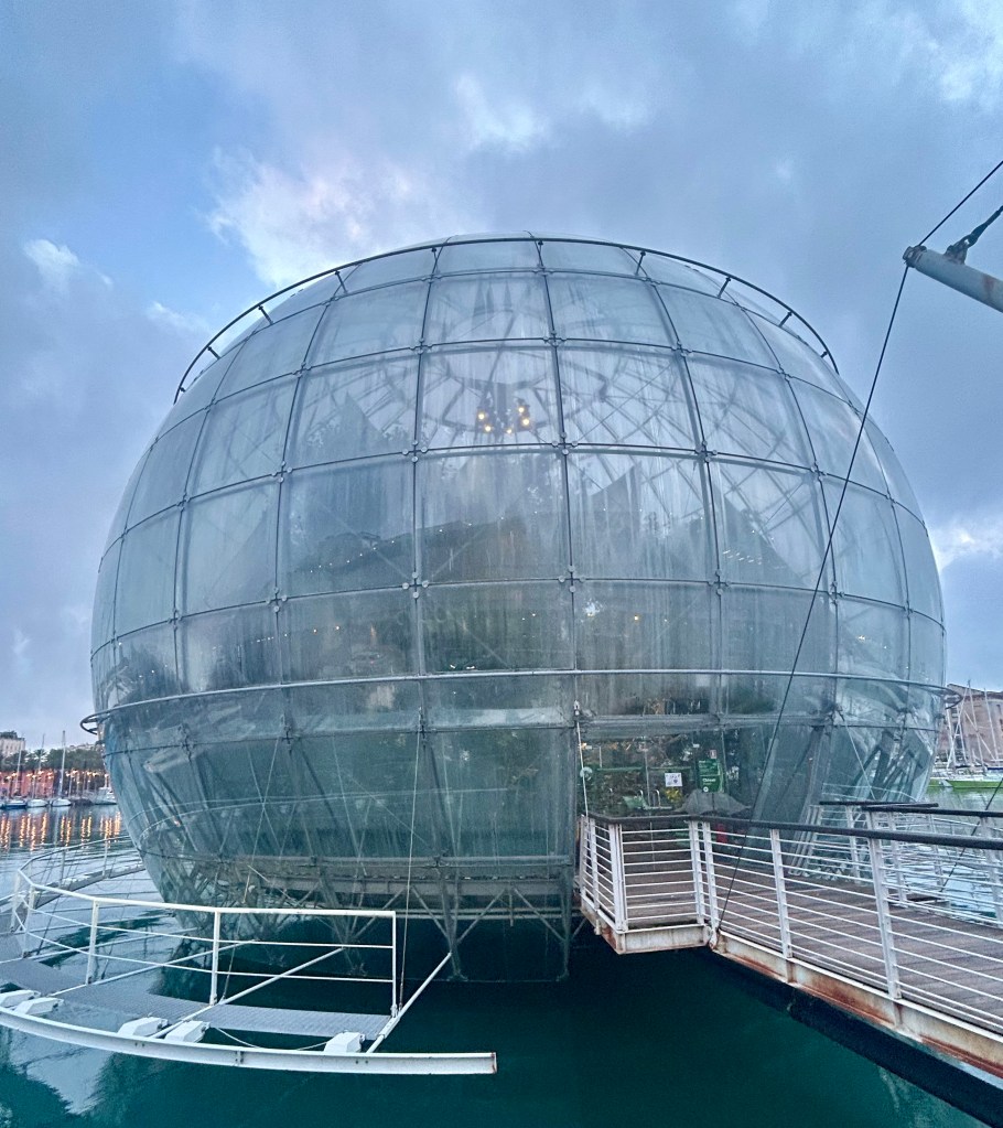 Ao lado do Aquário fica a Biosfera, uma bolha gigante de vidro suspensa sobre o mar. A esfera contém um ecossistema tropical, com animais e plantas, incluindo uma Cacatua que faz pose e grita para os visitantes. O ingresso é 5 Euros por pessoa.