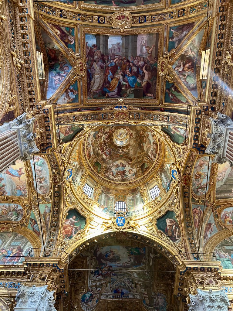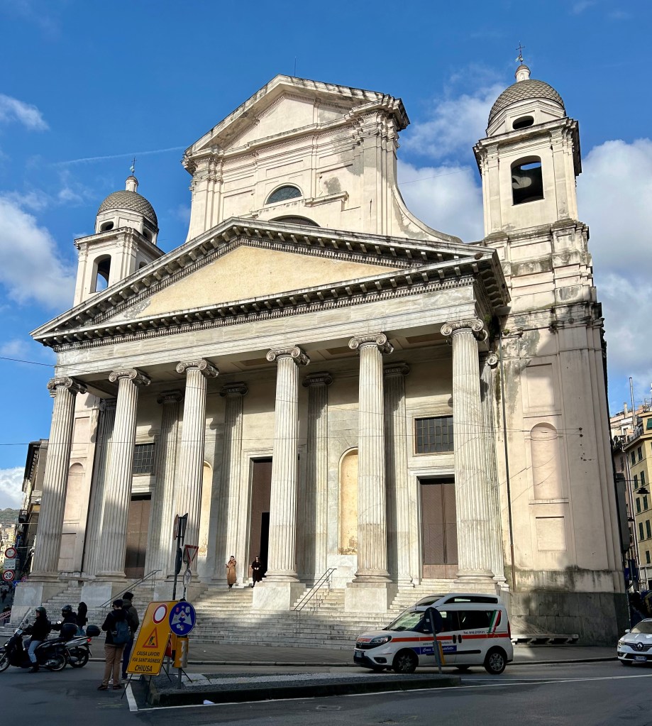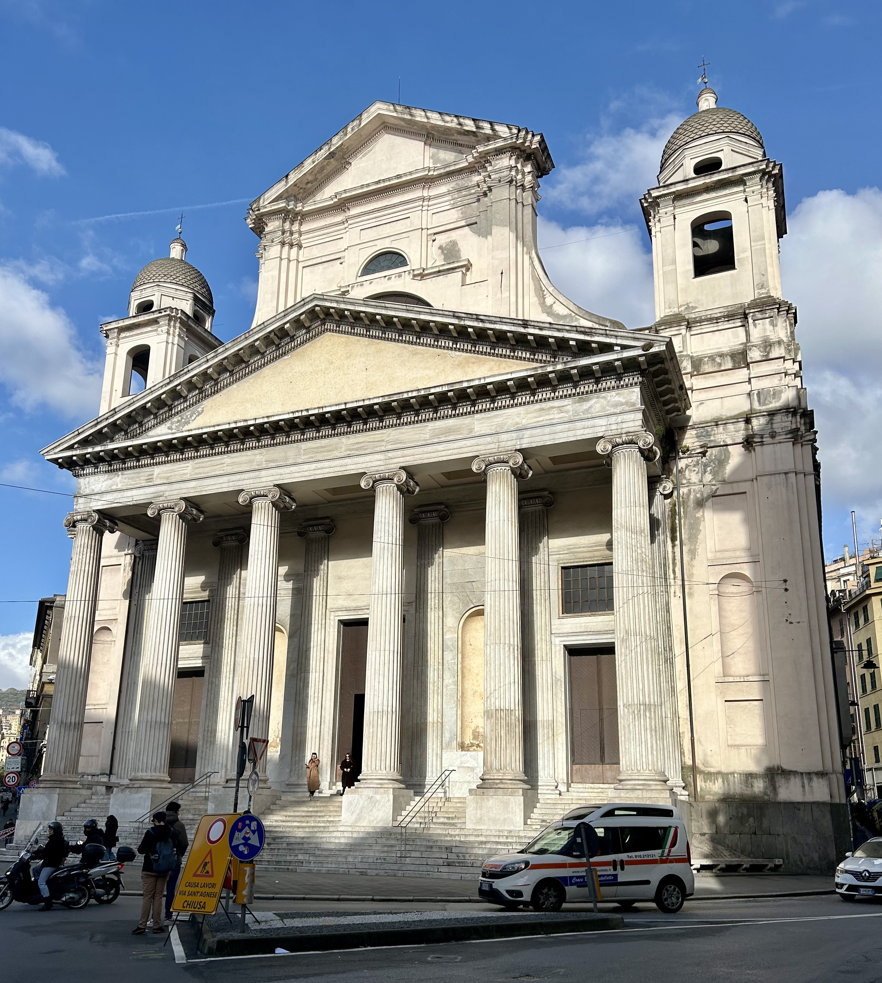 É apontada como uma das igrejas mais bonitas de Gênova. O interior é todo dourado e abriga grandes obras da pintura genovesa. Logo acima da porta de entrada está o quadro com A Última Ceia de Giulio Cesare Procaccini, a pintura de 40 metros quadrados, a maior em extensão ainda hoje preservada na cidade. A pintura baseia-se no modelo de Leonardo da Vinci, em Milão. Parte da Basílica foi destruída durante os bombardeios da Segunda Guerra Mundial.