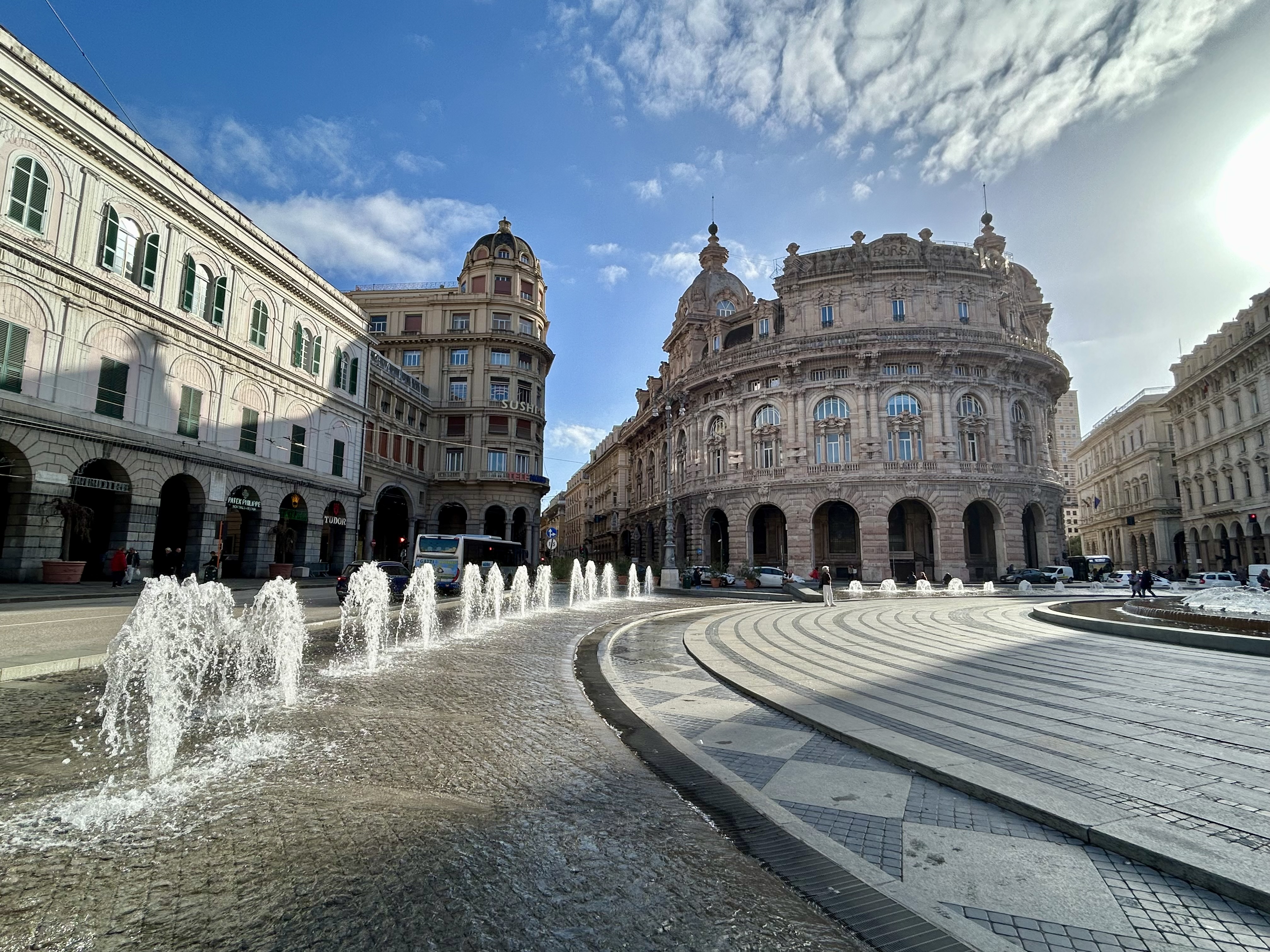 É a principal praça de Gênova. Separa o Centro Histórico do moderno centro da cidade. Uma linda fonte é a atração principal. A praça leva o nome de Raffaele de Ferrari, que doou dinheiro para ajudar a expandir o porto de Gênova no século 19. Chama a atenção, no outro lado da praça, uma estátua em homenagem a Giuseppe Garibaldi, o general, guerrilheiro, mercenário e patriota italiano que foi denominado de heroi de dois mundos por ter participação em conflitos na Europa e no Brasil – Rio Grande do Sul, principalmente.