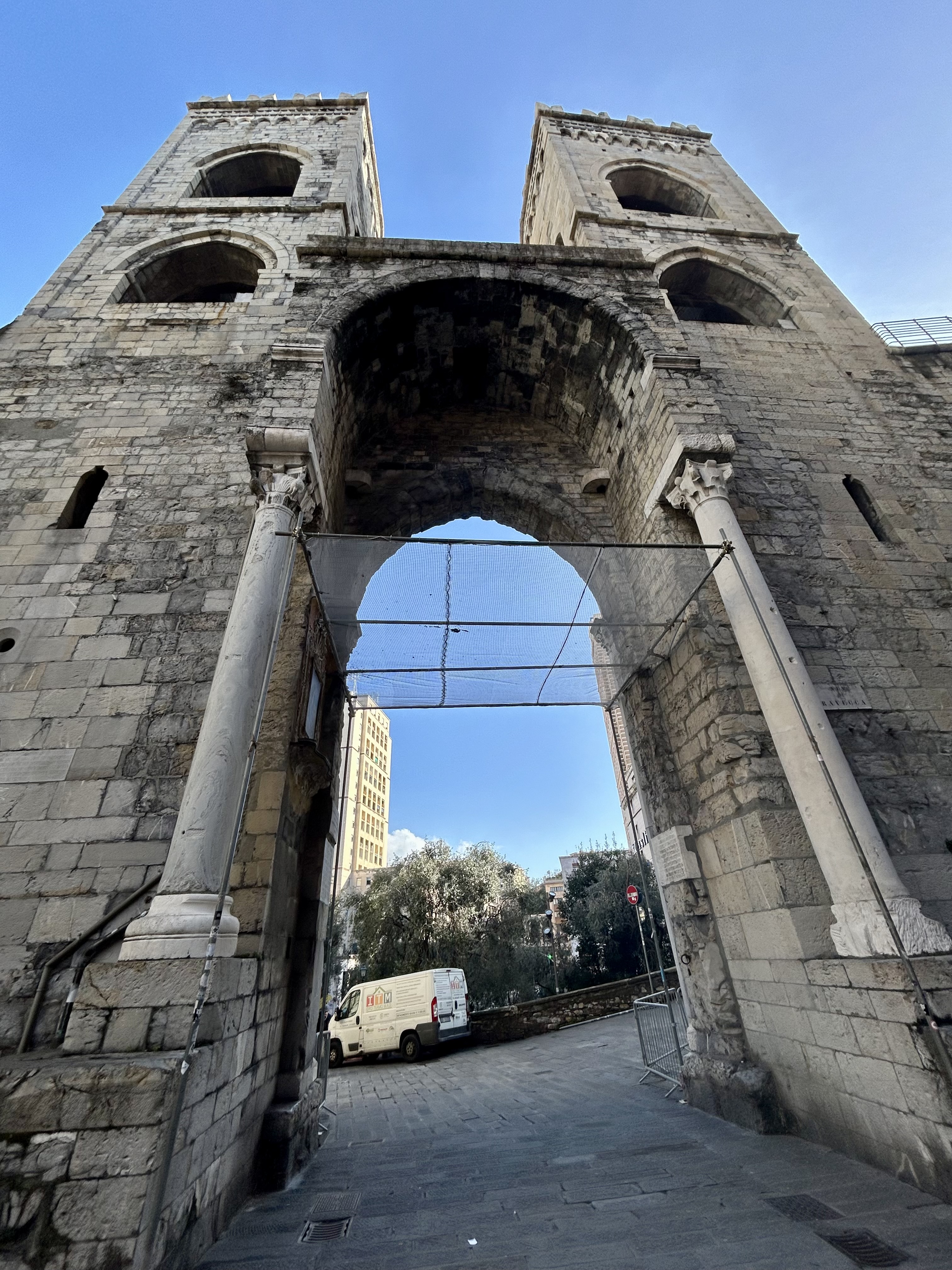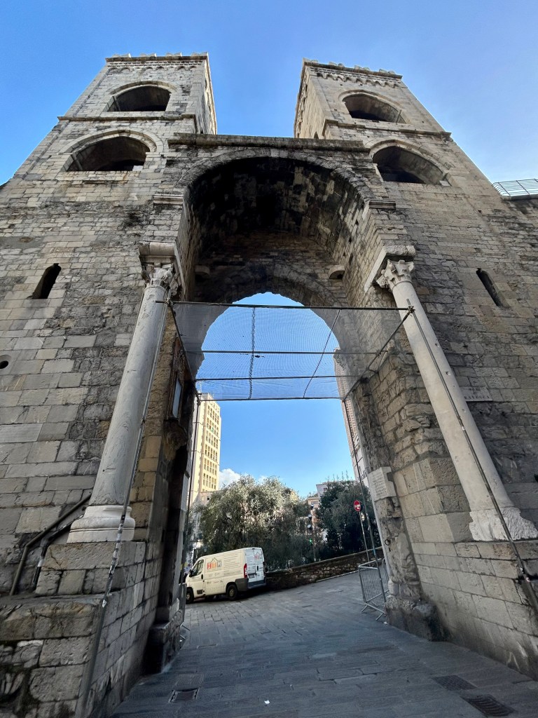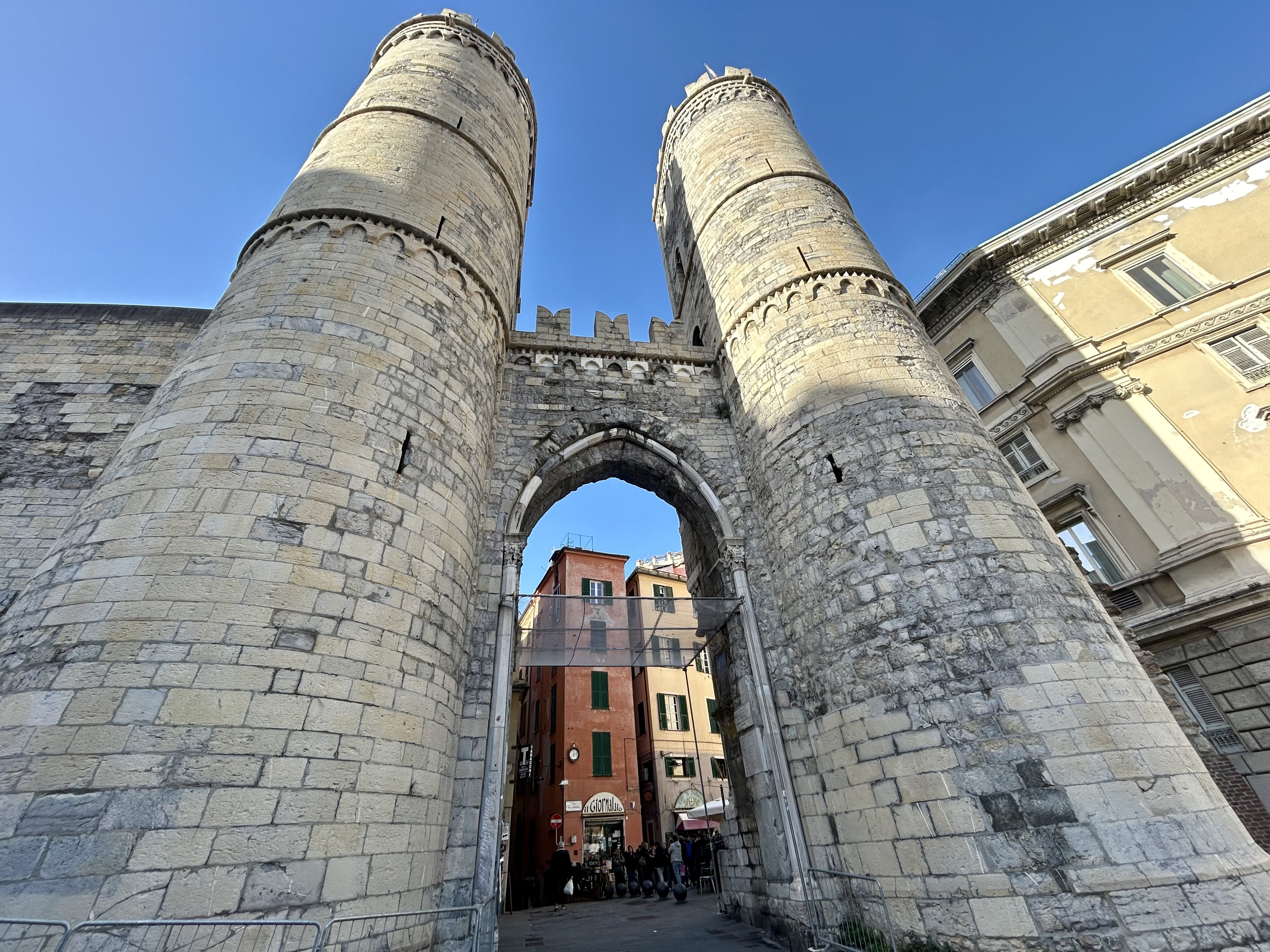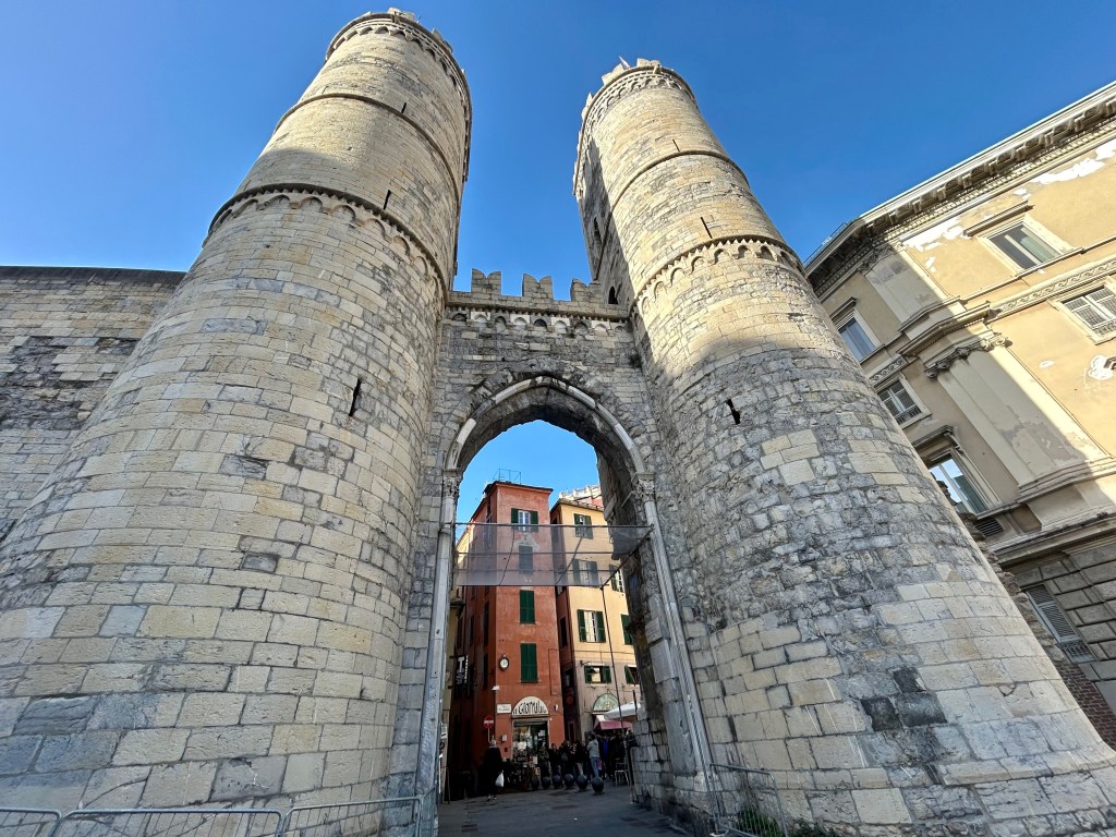Era a entrada da cidade medieval para quem chegava a Gênova vindo do leste. Dominava a colina de S. Andrea, que leva o nome do mosteiro demolido no século 19 para dar origem à Via Dante. As altas torres que emolduram a entrada ainda ostentam as duas placas latinas que comemoram, com o feito arquitetônico, as glórias de Gênova.