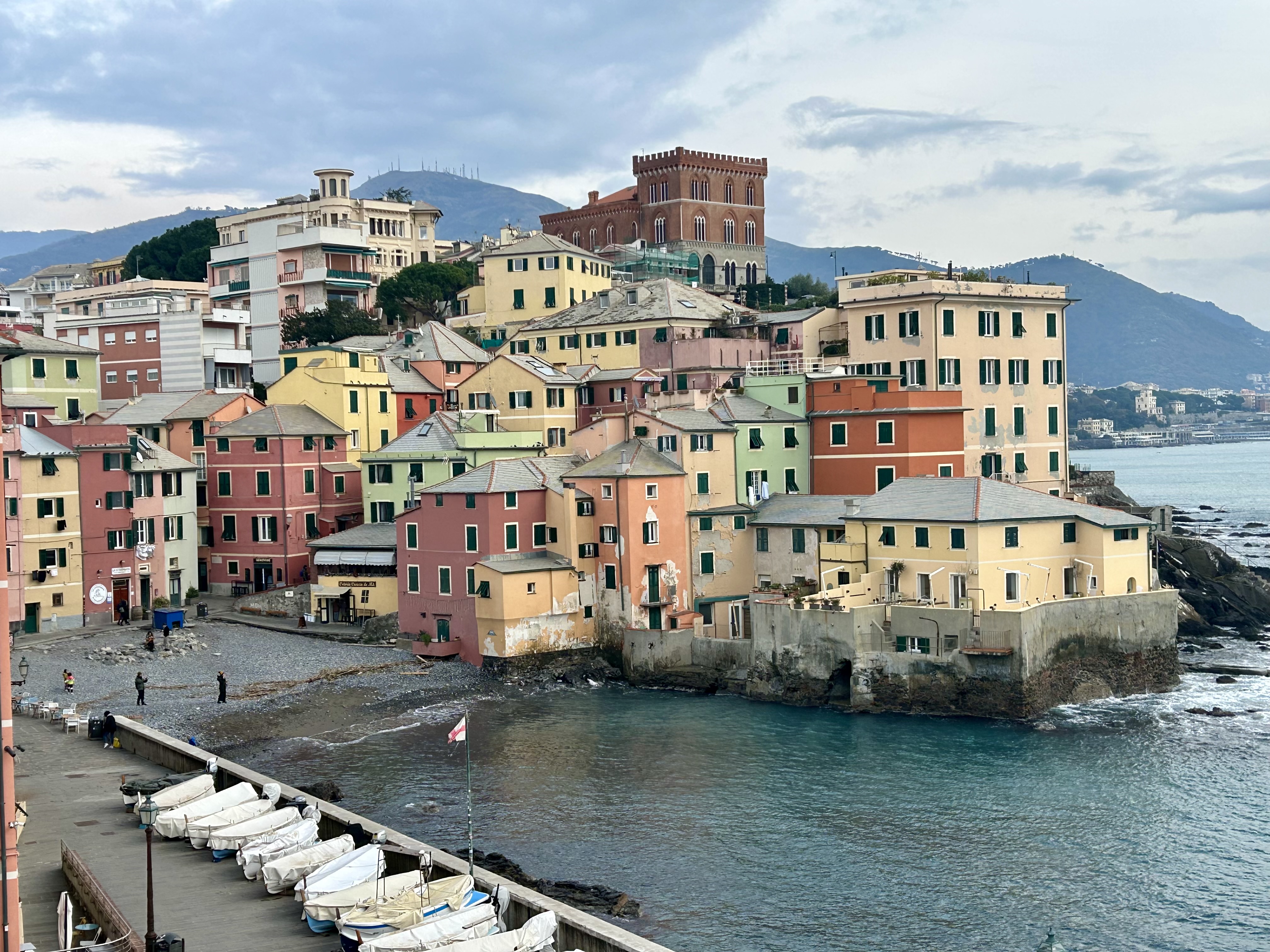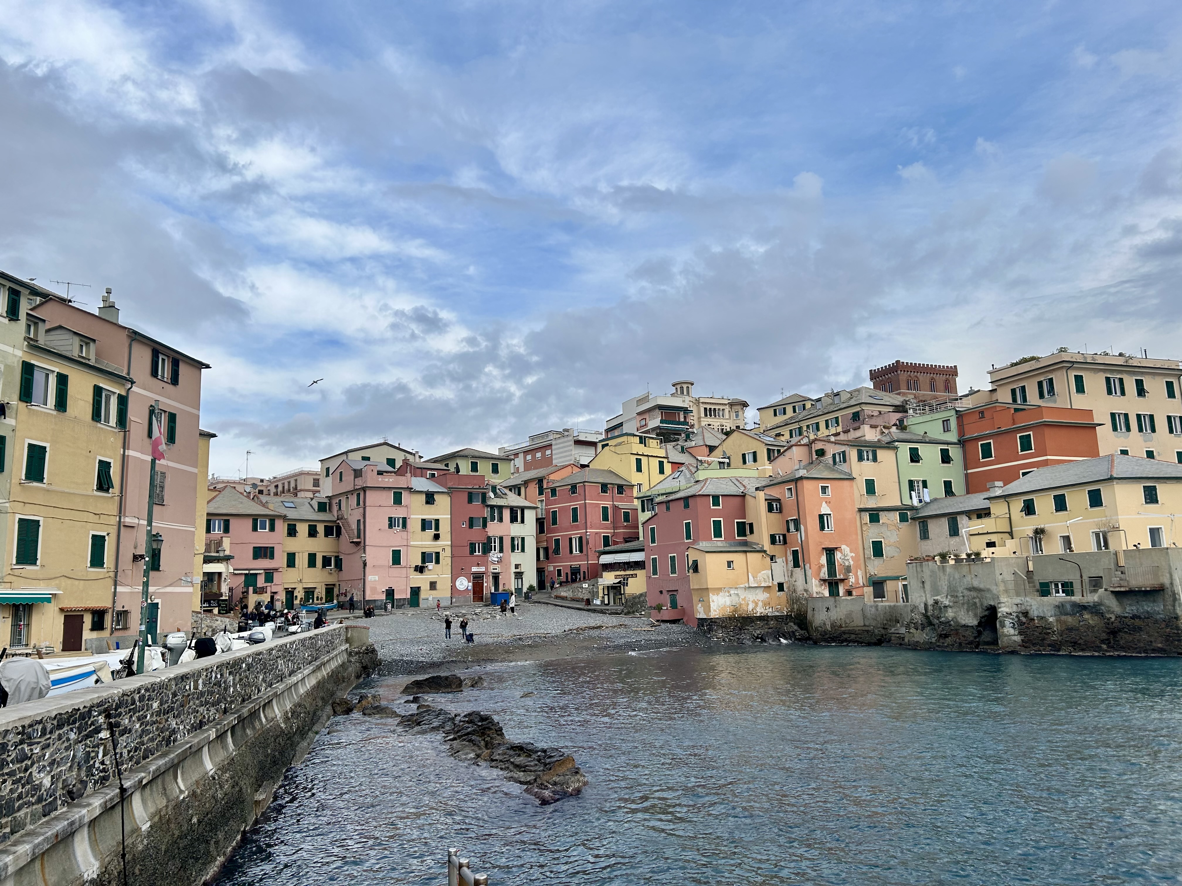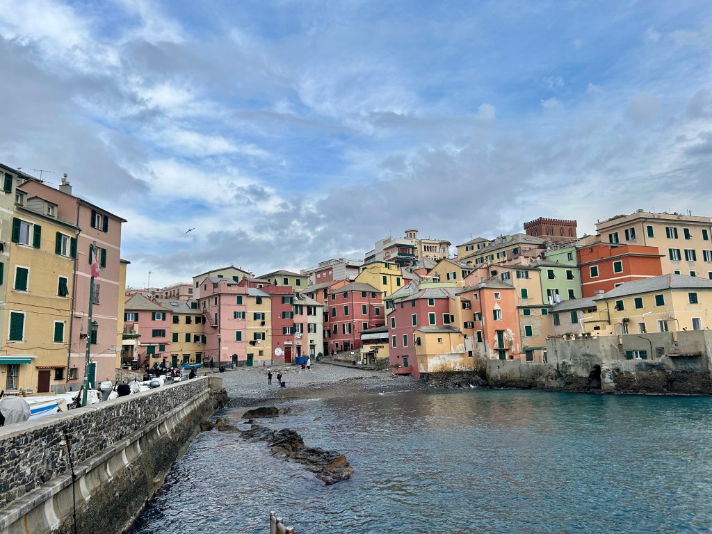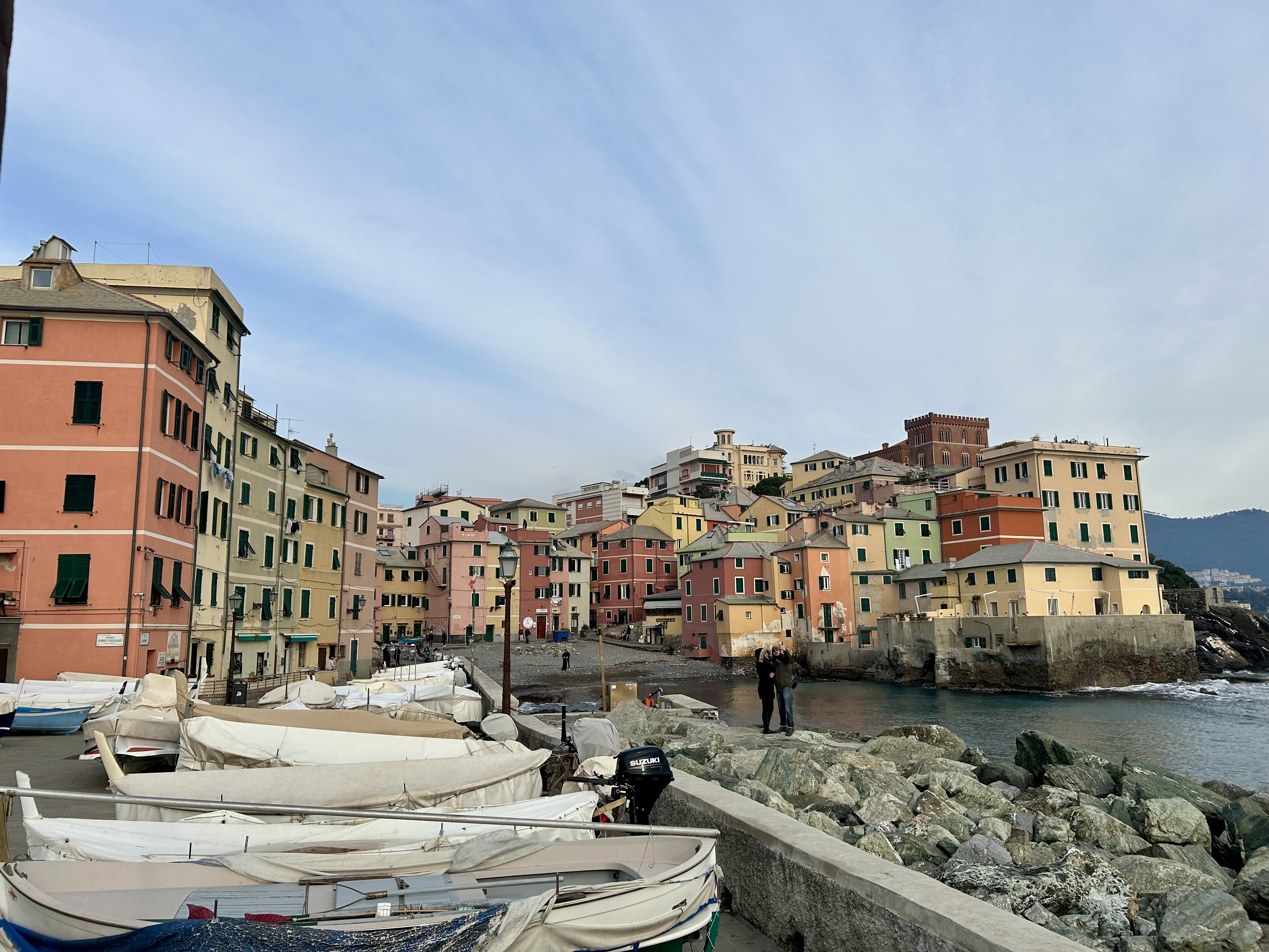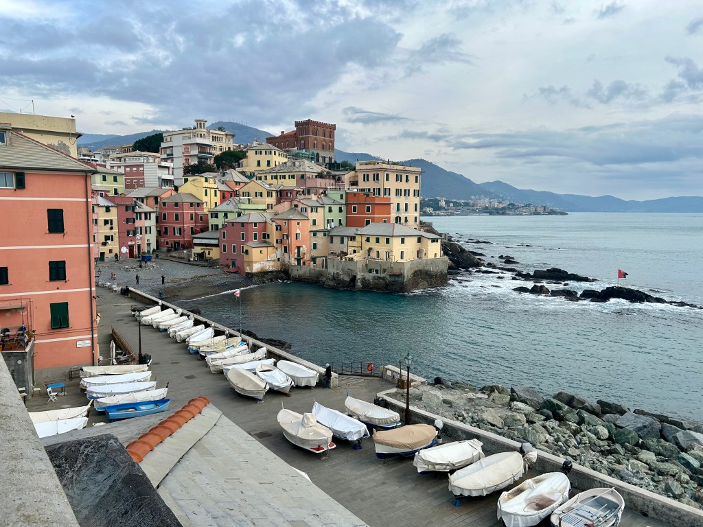 O motorista que nos informou que era necessário comprar os tíquetes na tabacaria teve a paciência de nos esperar e, depois, indicou onde deveríamos descer para acessar Boccadasse. Dez minutos de viagem e o ônibus nos deixa a 200 metros do vilarejo. Chega a lembrar um pouco as cidades que fazem parte da Cinque Terre. É um espetáculo, com as casas coloridas e um pequeno trecho de praia com pedras e diversos barcos guarnecidos. Sem dúvida, é um lugar imperdível quando se visita Gênova.