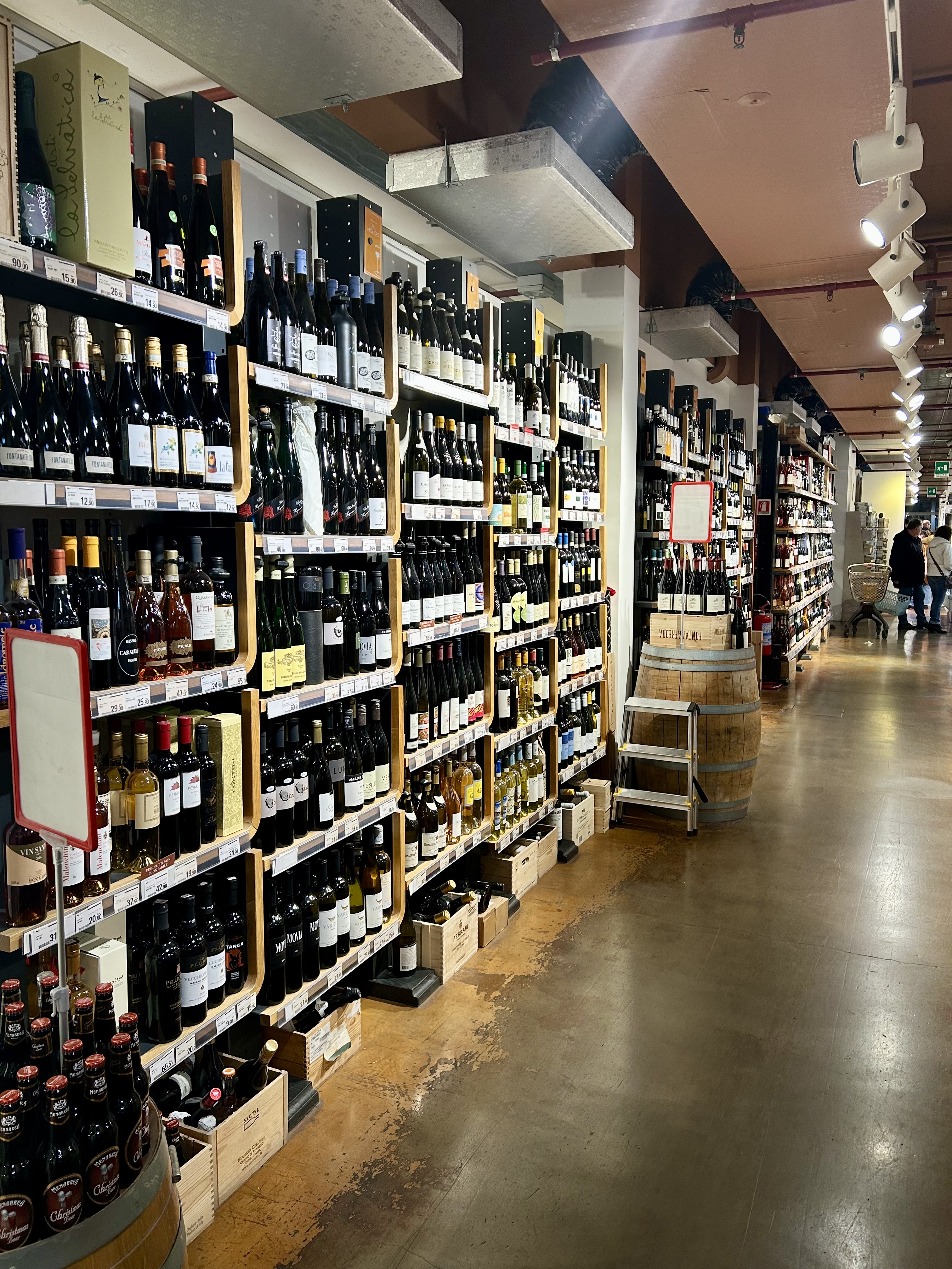 Pouco além do Aquário tem uma loja do Eataly, um supermercado com todos os tipos de produtos italianos, desde massas, frutas, verduras, vinhos, prosecco, águas, cervejas, outras bebidas, carnes, doces, queijos, presuntos, mortadelas, manteiga, pães, pizzas, café e restaurantes, enfim, um verdadeiro paraíso. Foi o nosso ponto de parada todos os dias sempre no fim da tarde para comprar vinho, água e prosecco.