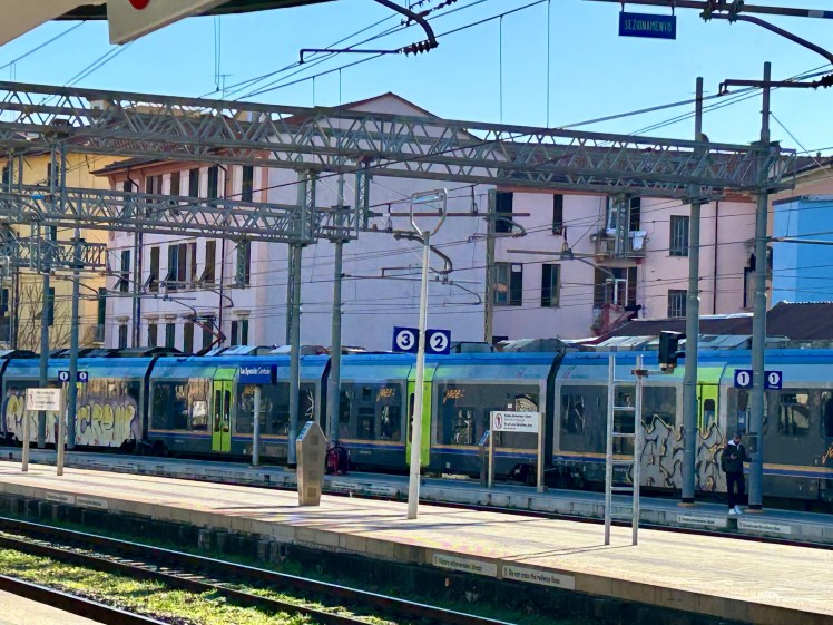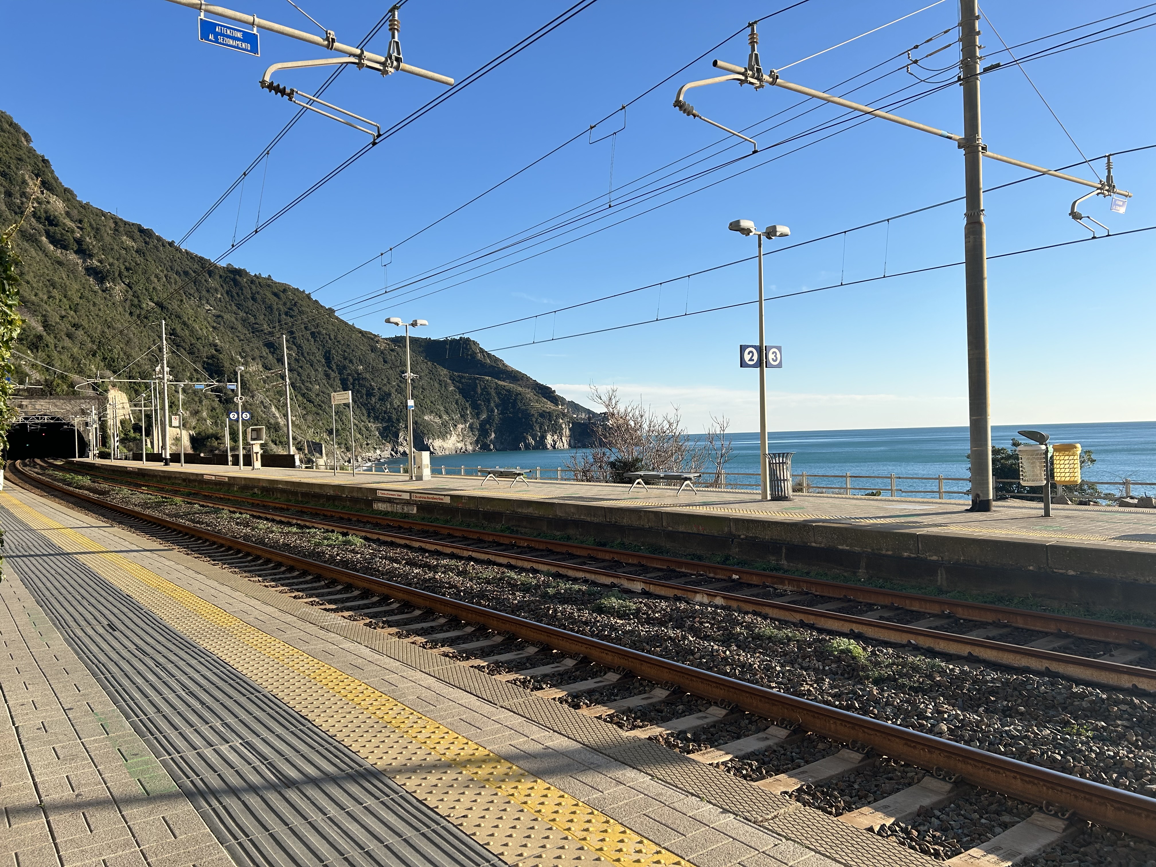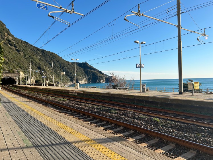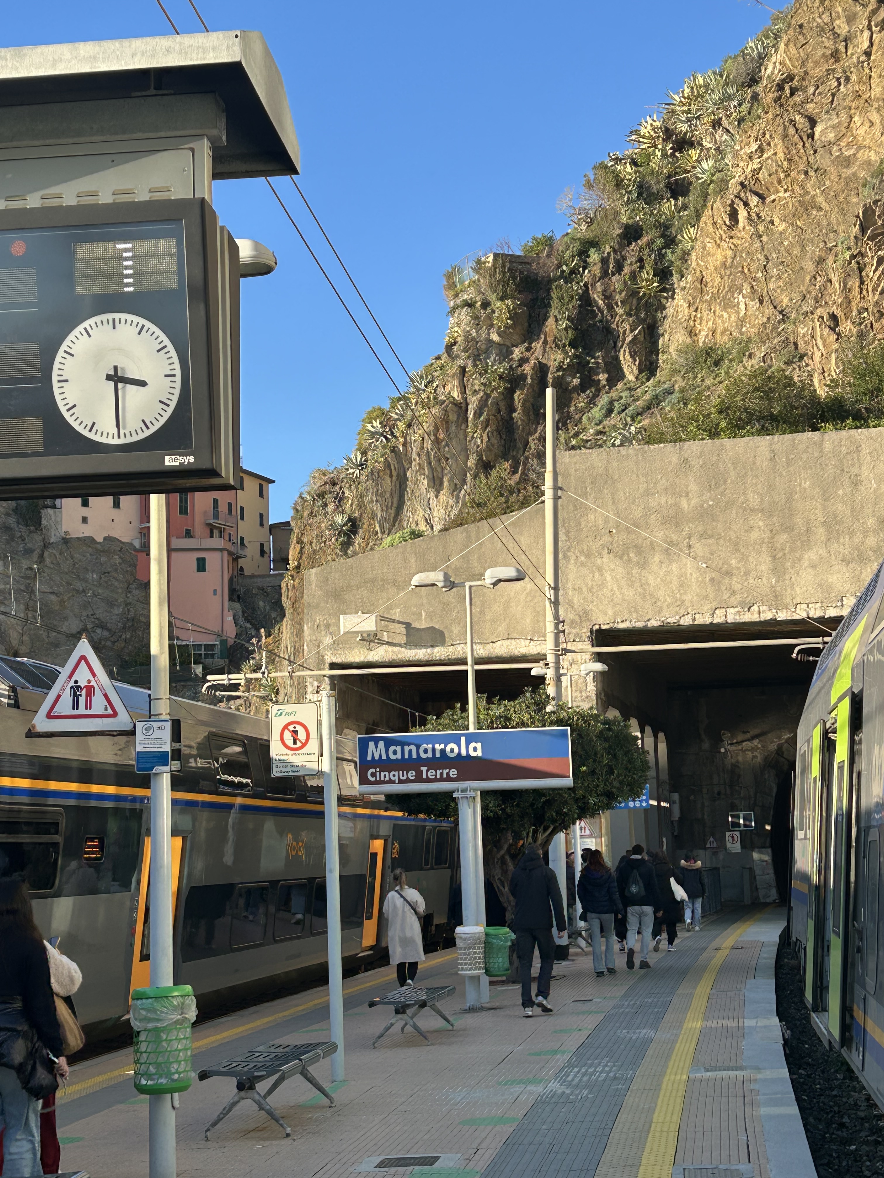 Em razão do rigor do inverno, existem poucas trattorias e restaurantes abertos em janeiro. O movimento de turistas, apesar do frio, é sempre constante. Foi assim no dia da nossa peregrinação – 13/01/25, uma segunda-feira. Em alguns locais era difícil encontrar um espaço para fotografar com calma. Em cada estação, uma pequena multidão subia ou descia do trem.