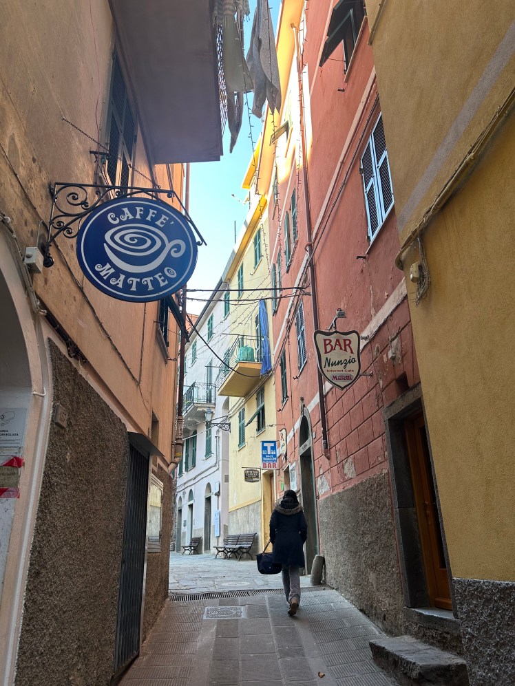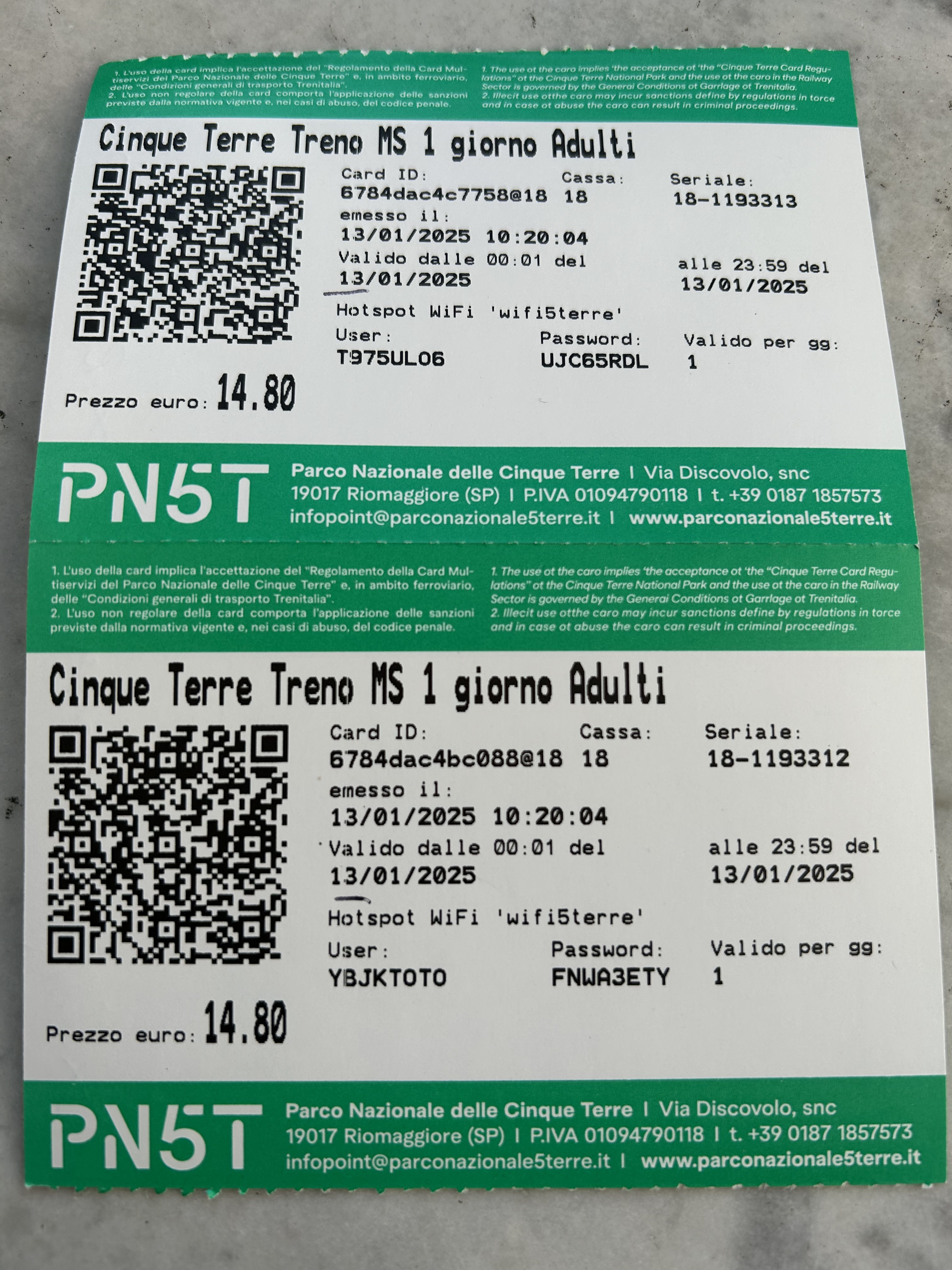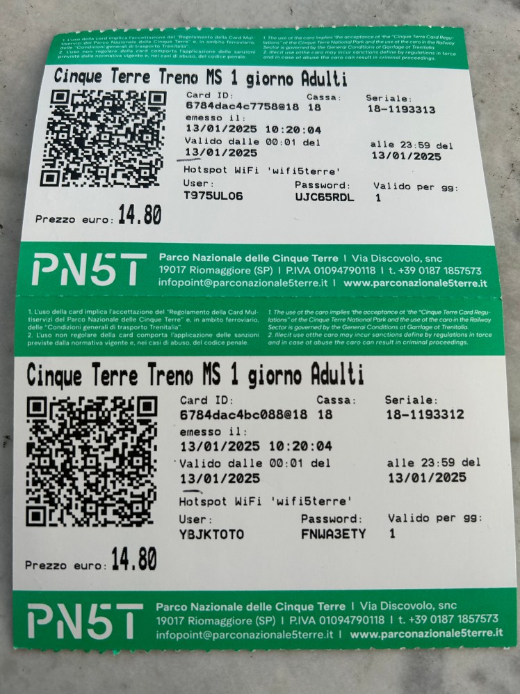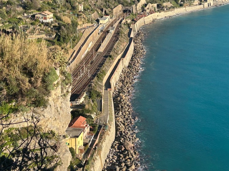 Em razão do rigor do inverno, existem poucas trattorias e restaurantes abertos em janeiro. O movimento de turistas, apesar do frio, é sempre constante. Foi assim no dia da nossa peregrinação – 13/01/25, uma segunda-feira. Em alguns locais era difícil encontrar um espaço para fotografar com calma. Em cada estação, uma pequena multidão subia ou descia do trem.