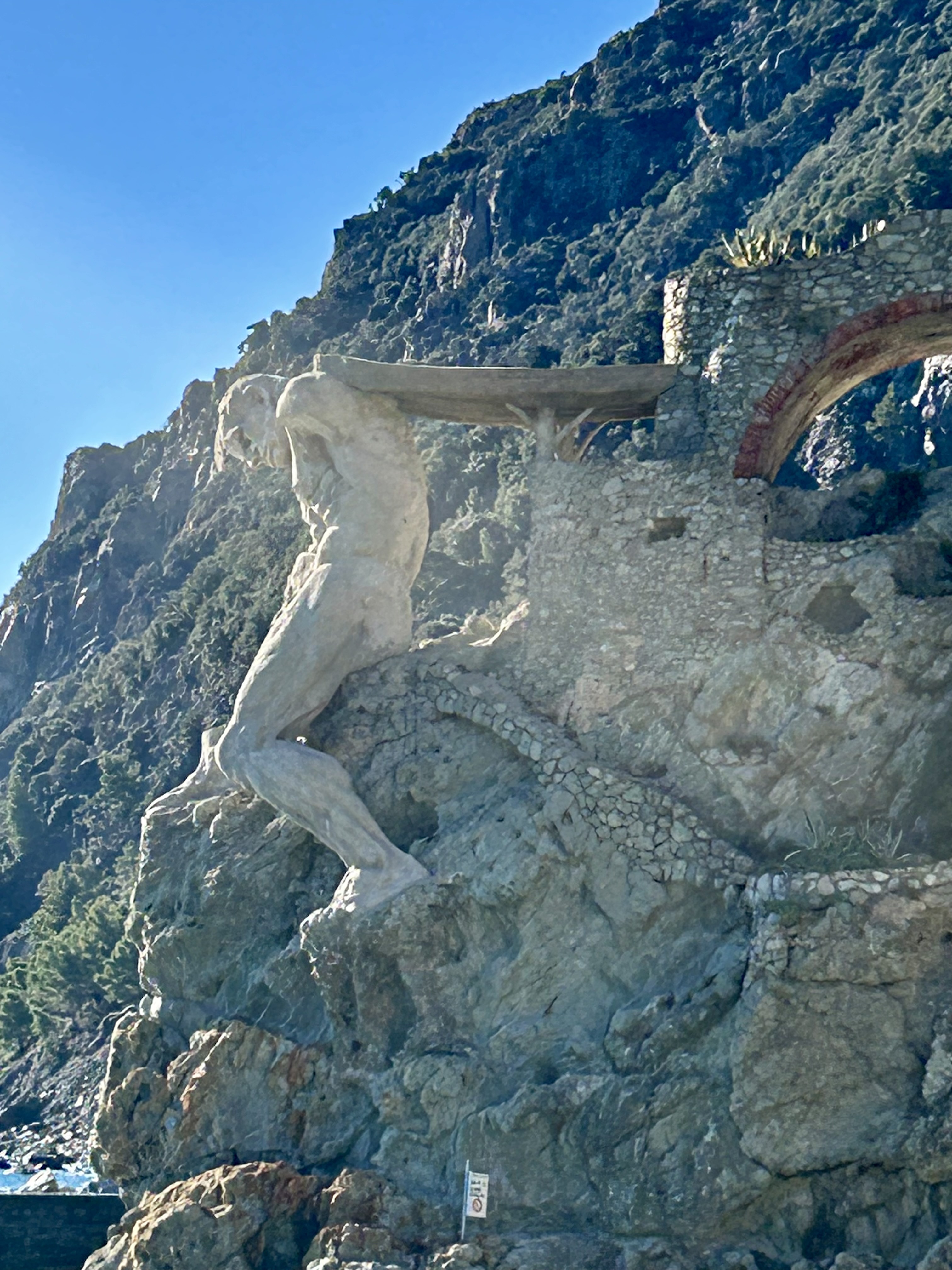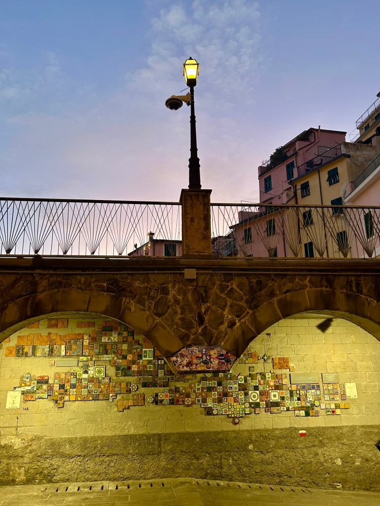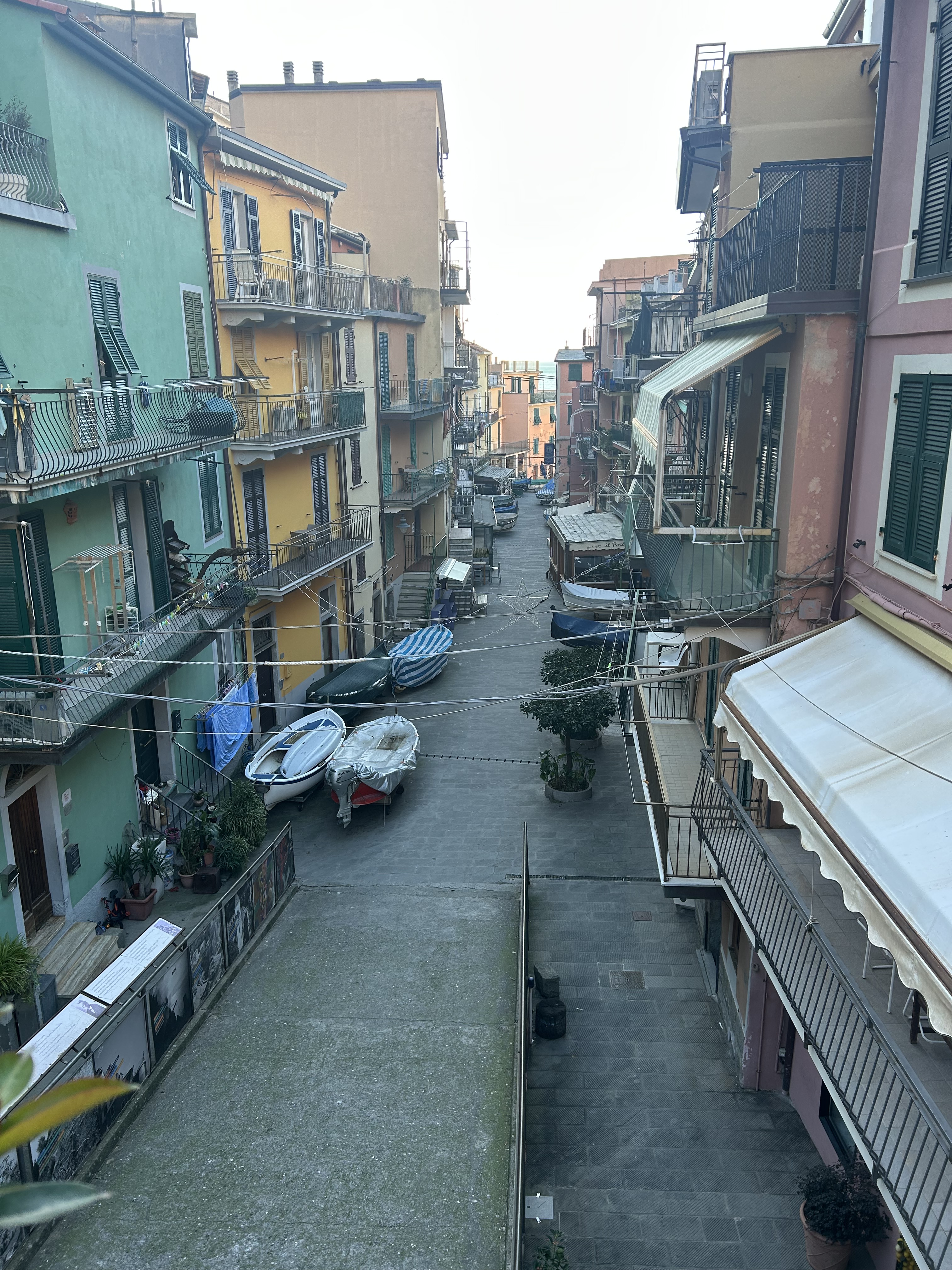 A aldeia não tem praia, mas um pequeno porto, onde diversas canoas estão “estacionadas” na calçada. As informações indicam que a aldeia é do século 7. Um longo túnel de quase 200 metros liga a estação de trem até a cidadela. Eram tantas pessoas disputando espaço no túnel que nos impressionamos. Faz muitos anos que viajamos nesta época do ano e geralmente é um período de baixa temporada por conta do frio. Já chegamos em cidadezinhas que era somente nós, eu e a Rossani, os turistas vagueando pelas ruas. Mas a sensação que ficamos visitando a região, desde Gênova a La Spezia, é que neste ano o inverno não espantou os turistas.