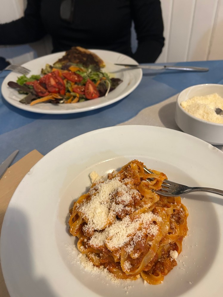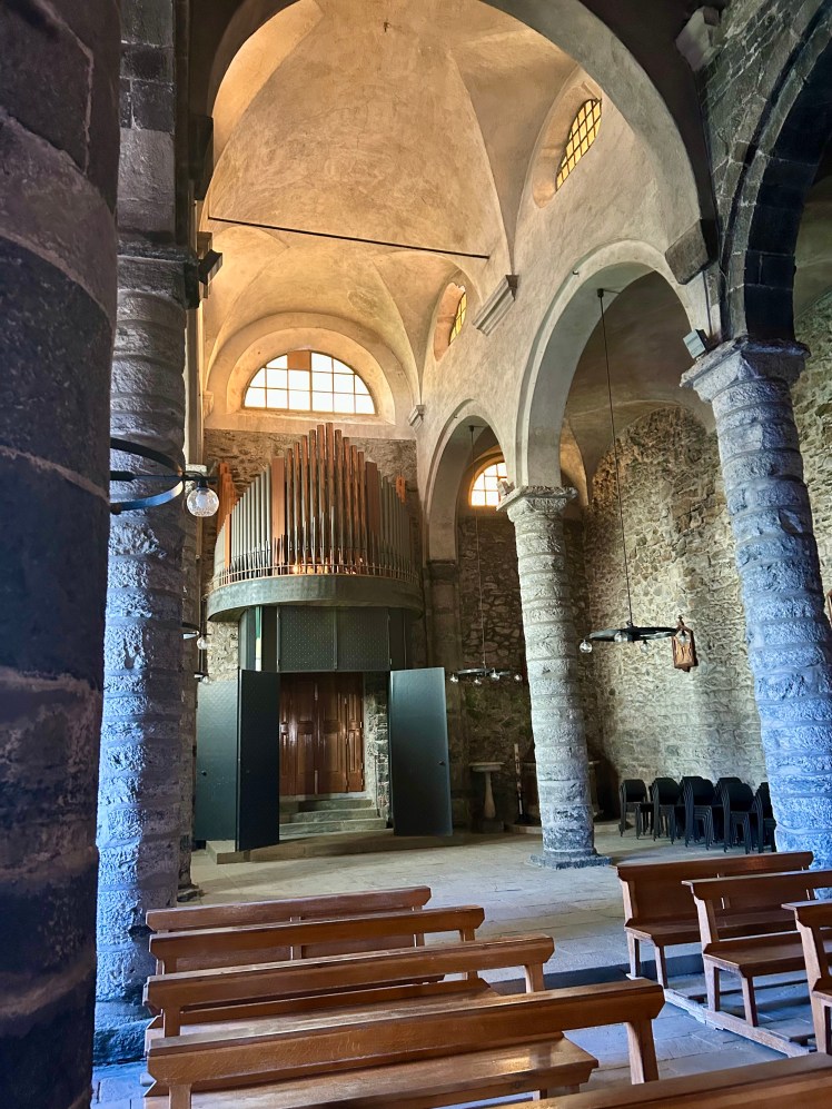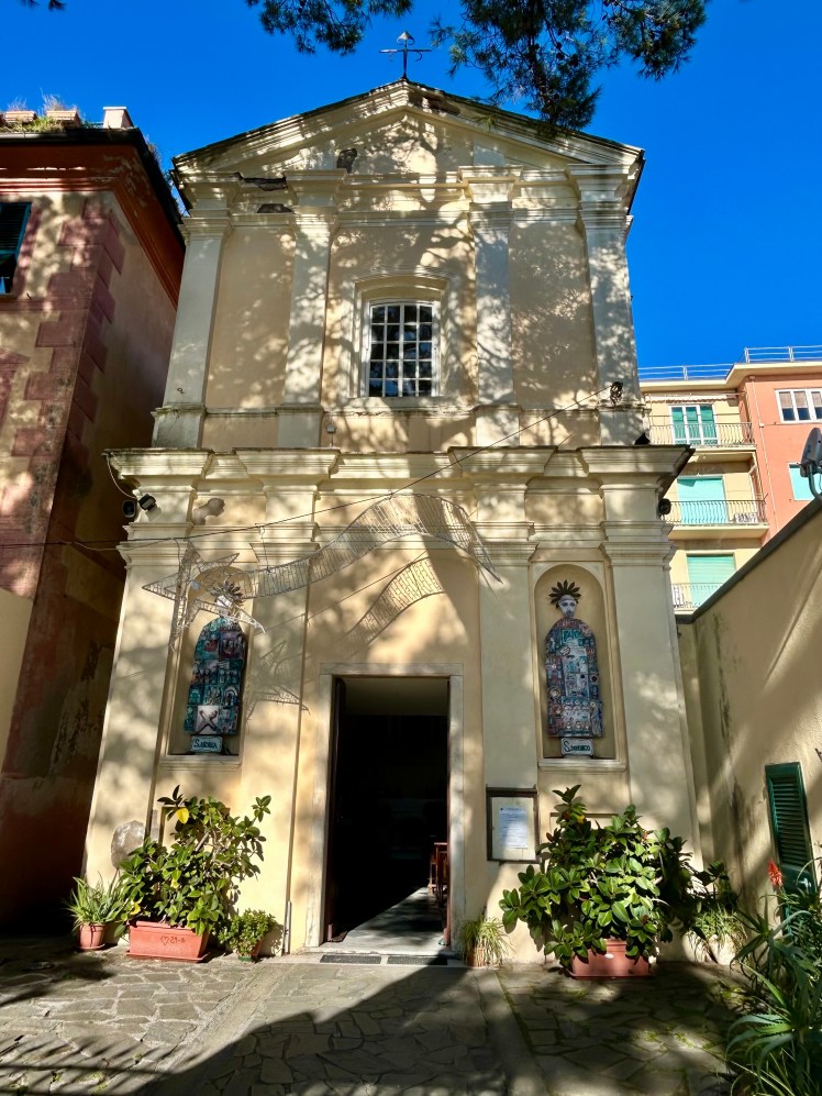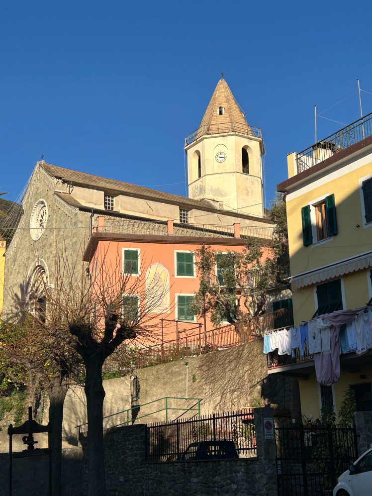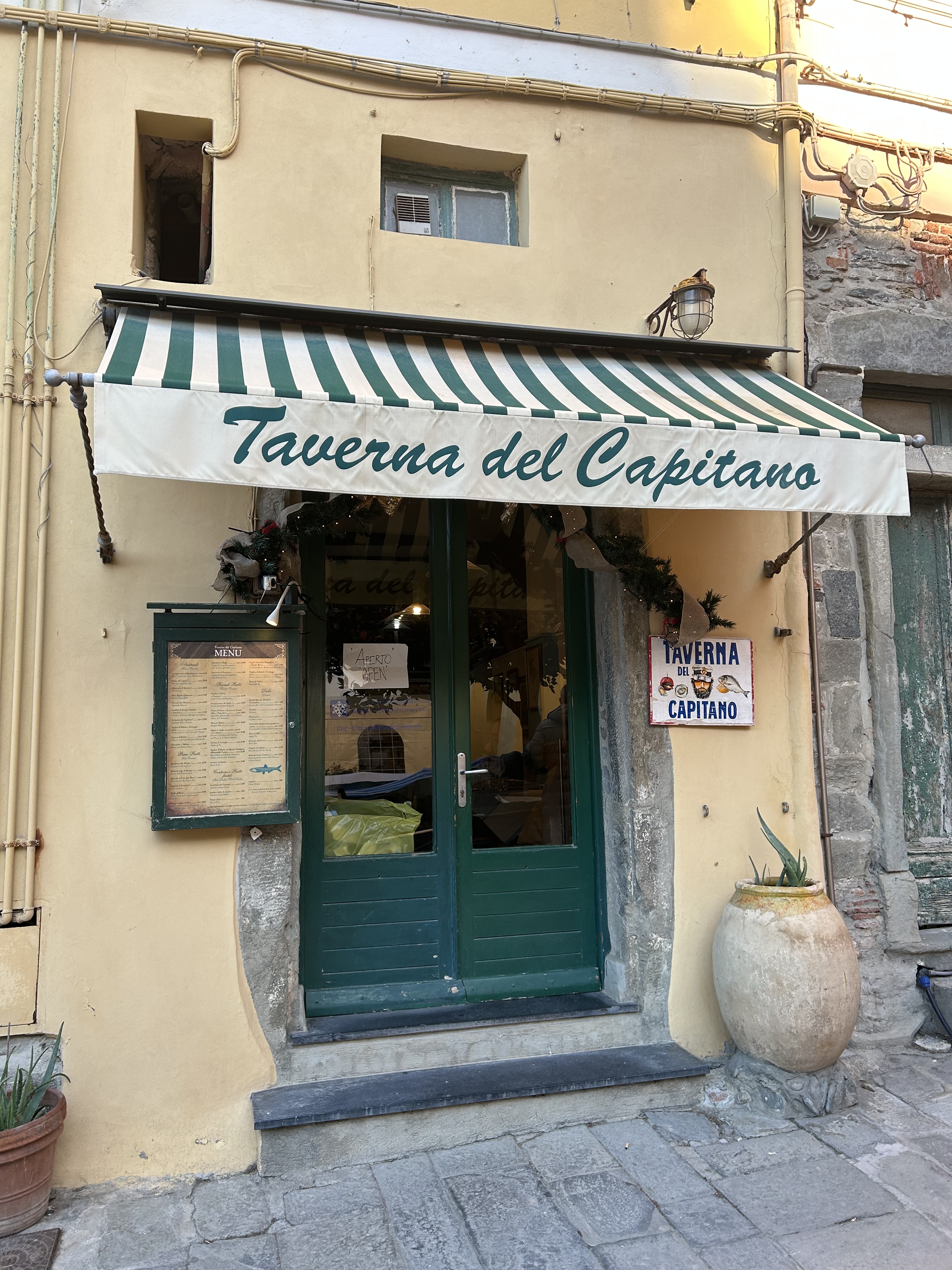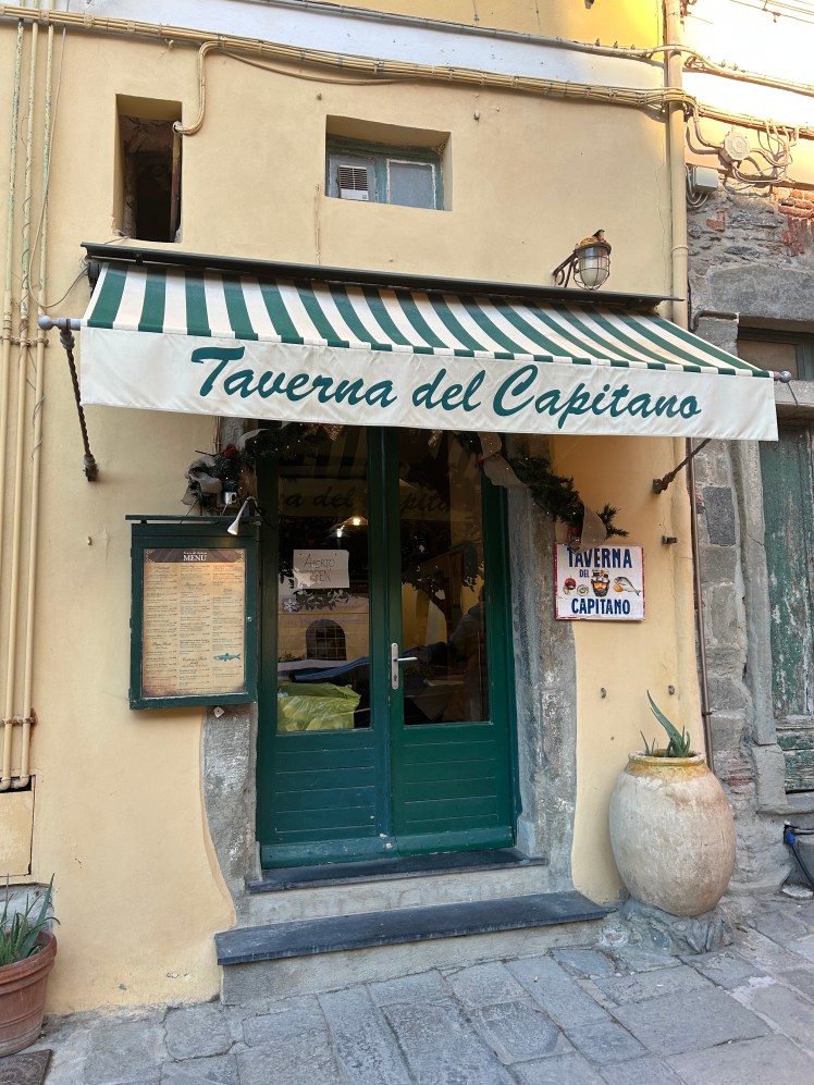 A Igreja de Santa Margarita de Antioquia foi erguida por volta de 1318. Aproveitamos para almoçar na Taverna del Capitano, quase ao lado da igreja. Pedimos um tagliatelle ao molho de ragu, uma torta de legumes e salada, acompanhados de 1,2 ml de vinho e água natural. Tudo por 40 Euros. Era um dos poucos restaurantes abertos em Vernazza e estava lotado.