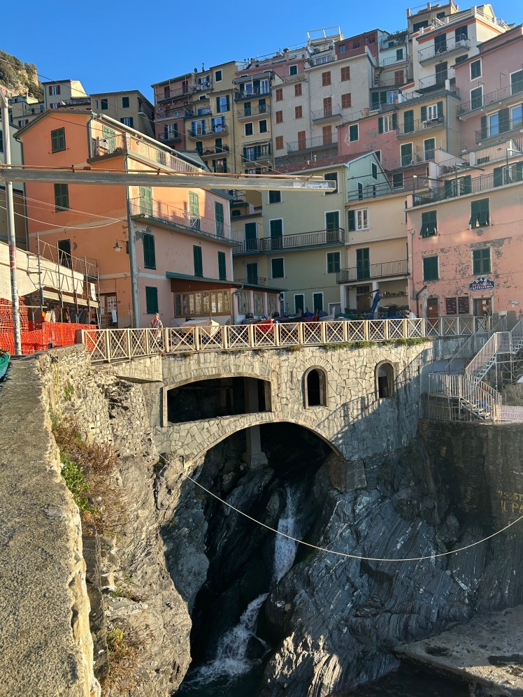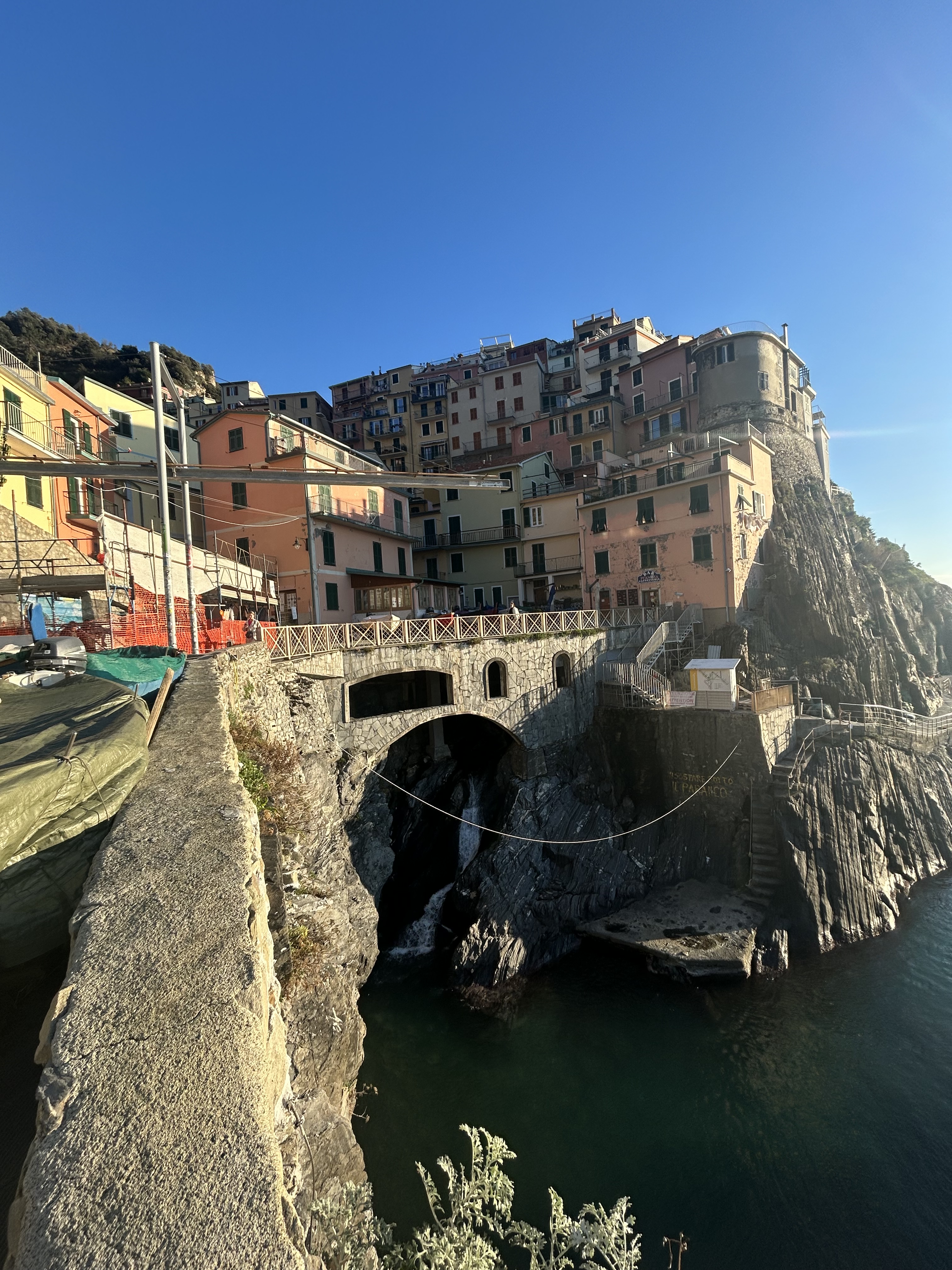 Construída sobre um rochedo de 70 metros de altura, Manarola é encantadora e fascinante, com suas casas coloridas diante a imensidão do mar de um azul profundo. Um túnel faz a ligação entre a estação do trem até o centrinho da aldeia. Uma descida leva até uma pequena praça diante do mar e é possível percorrer um caminho até o topo da montanha, de onde o visual é ainda mais espetacular.
