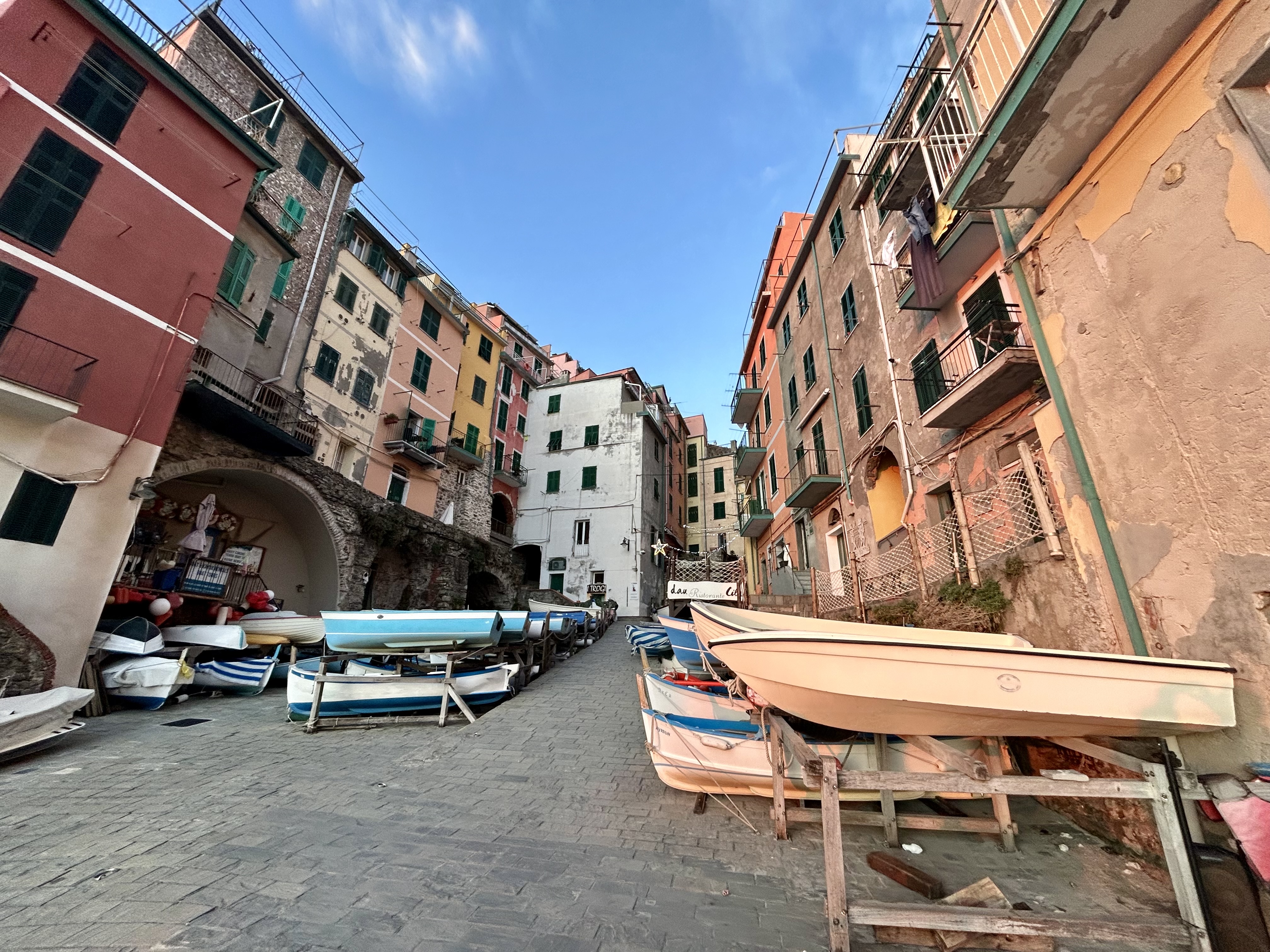 Os barcos estão “estacionados” ao longo dessa descida. Dá uma vontade de passar todo o dia apreciando o visual. Mas optamos por continuar o roteiro até a próxima terre, Riomaggiore, que é tão próxima, que a impressão que se tem é que o trem nem saiu do lugar.