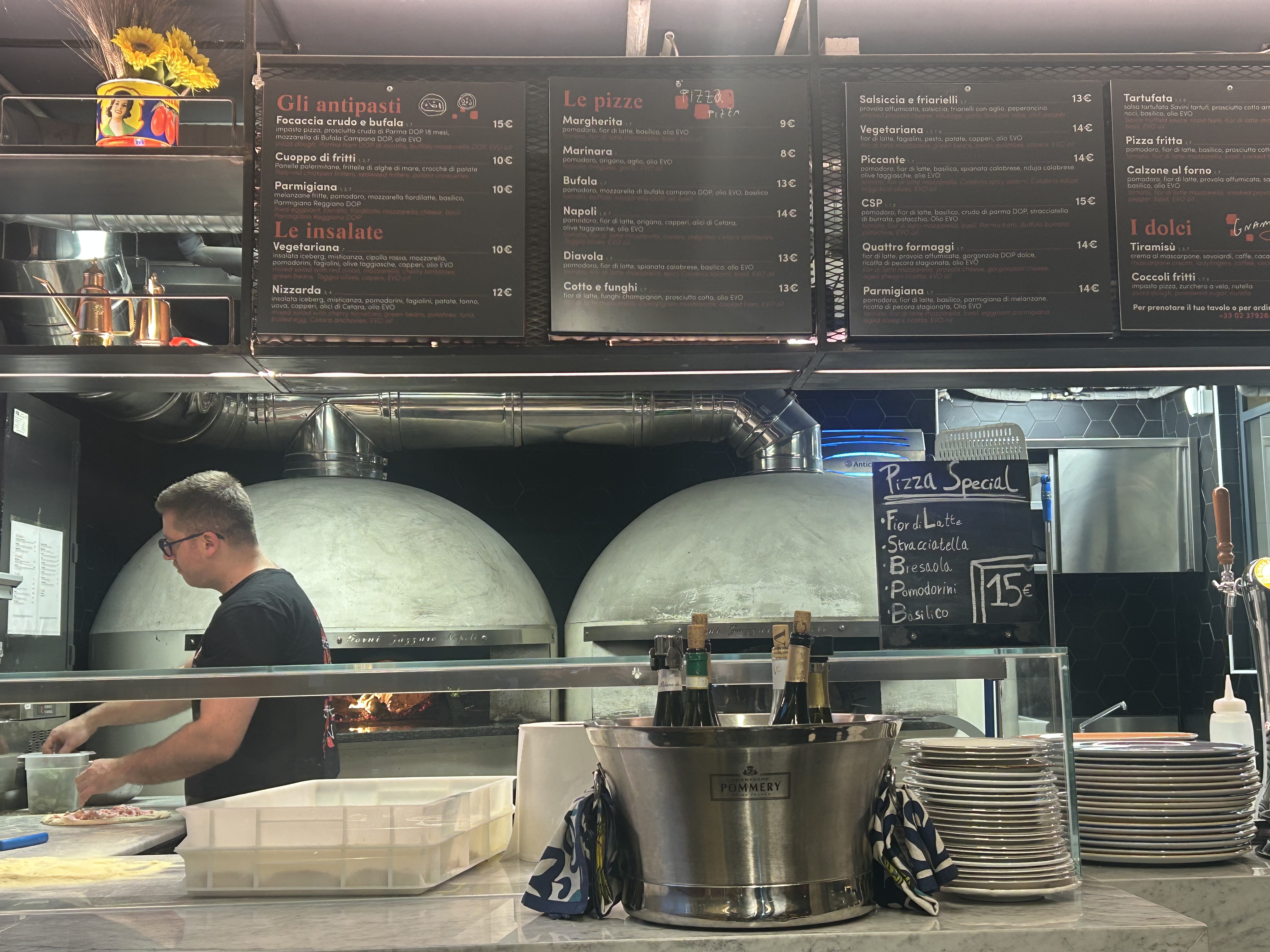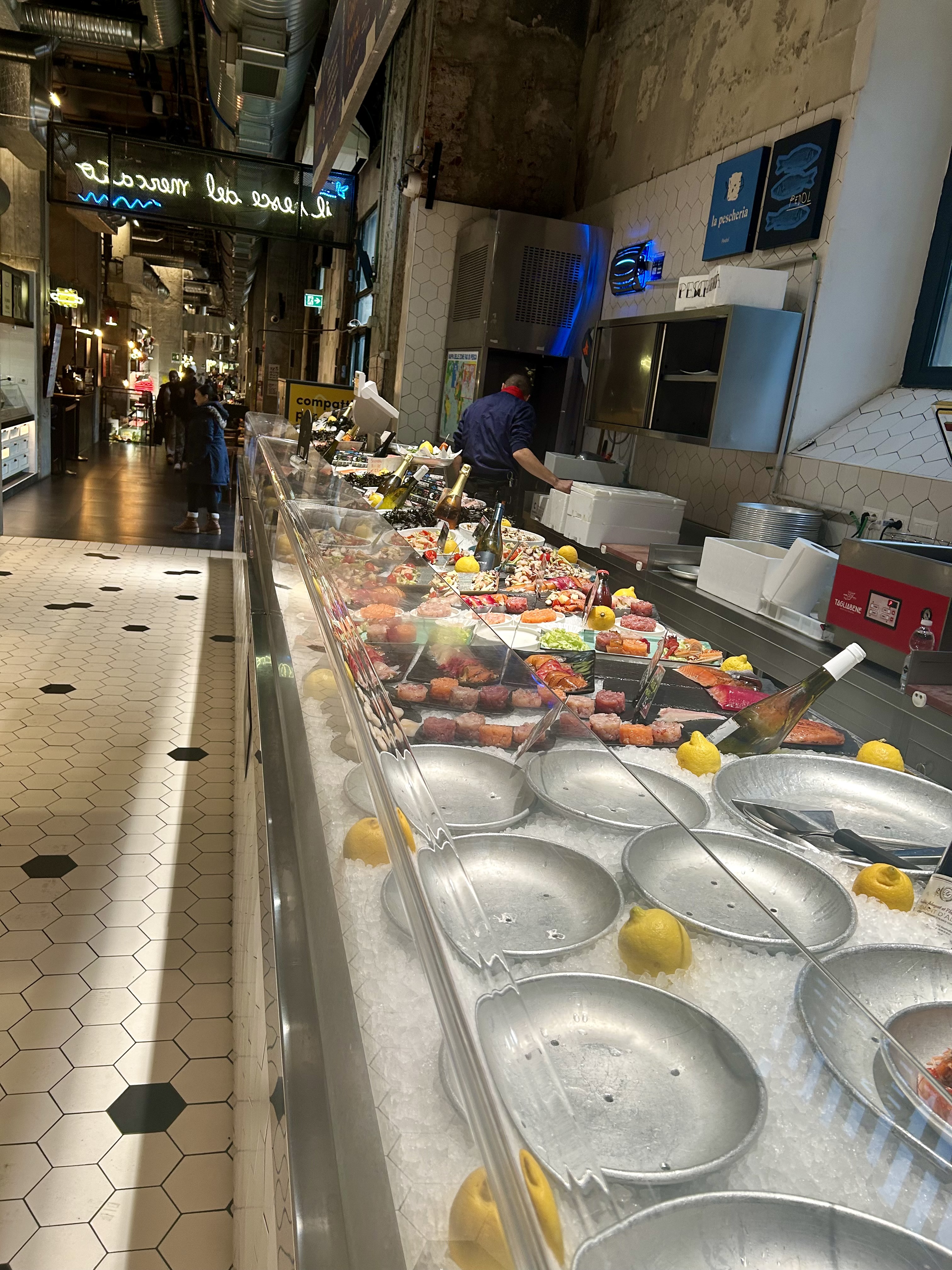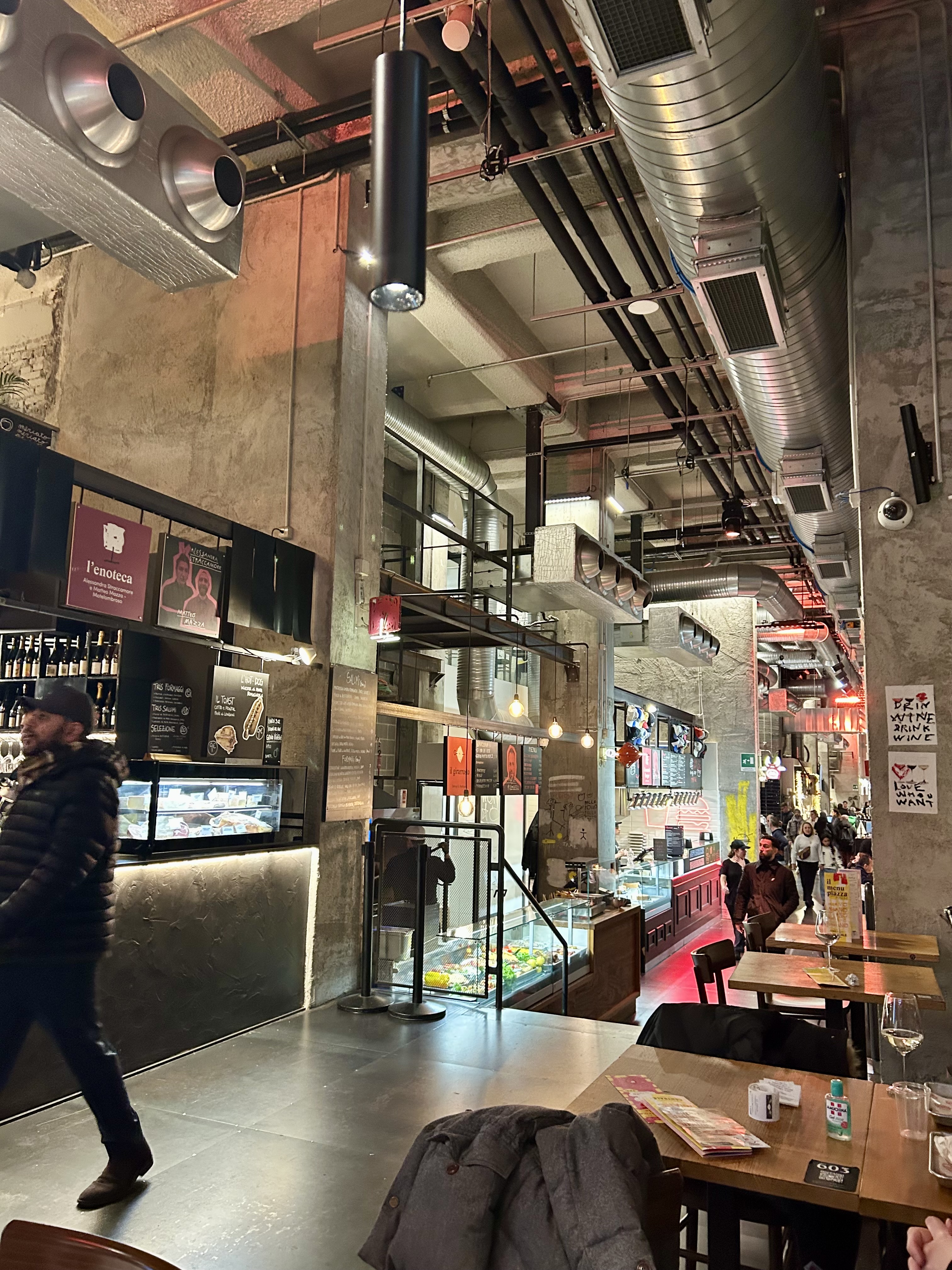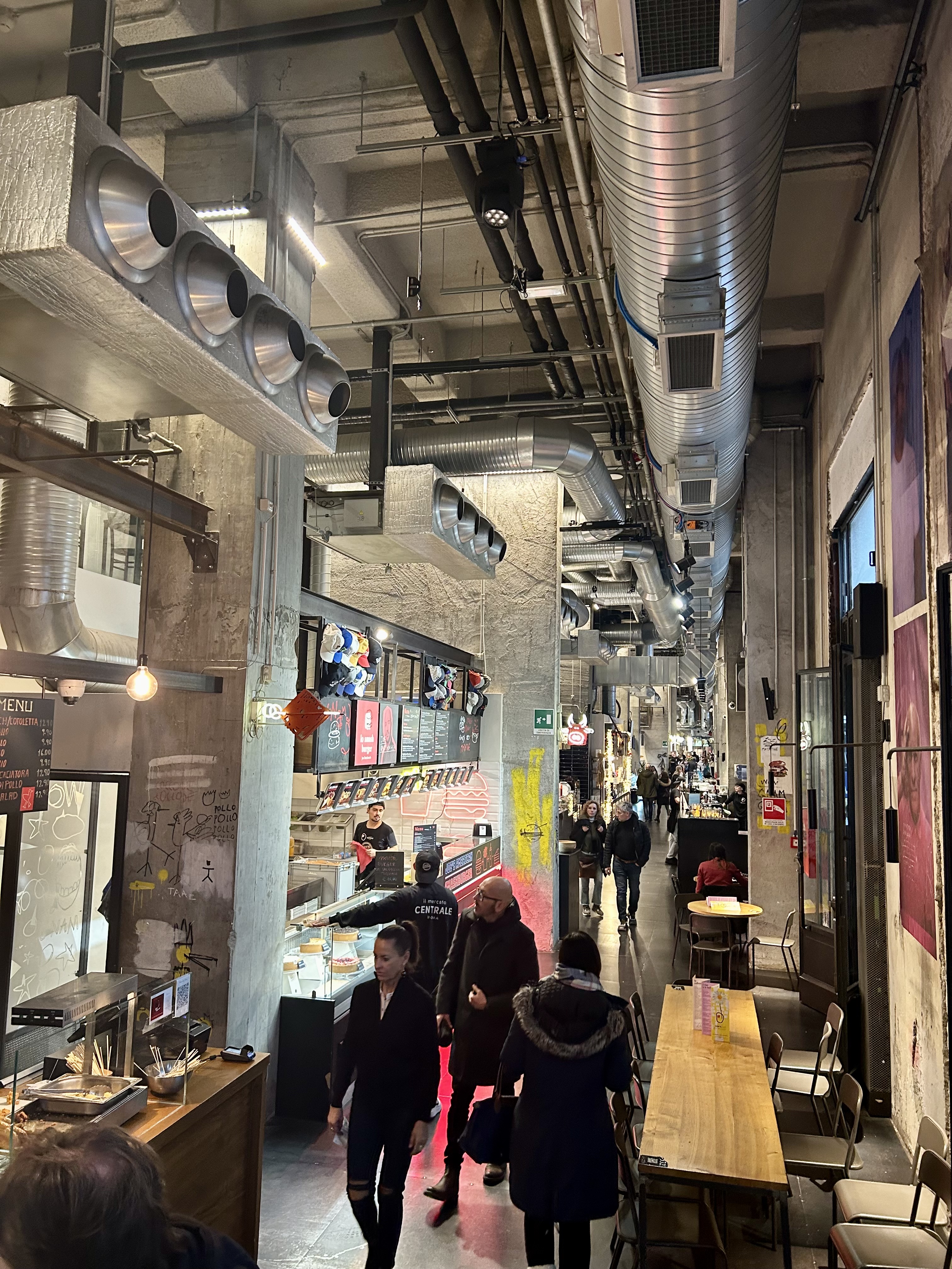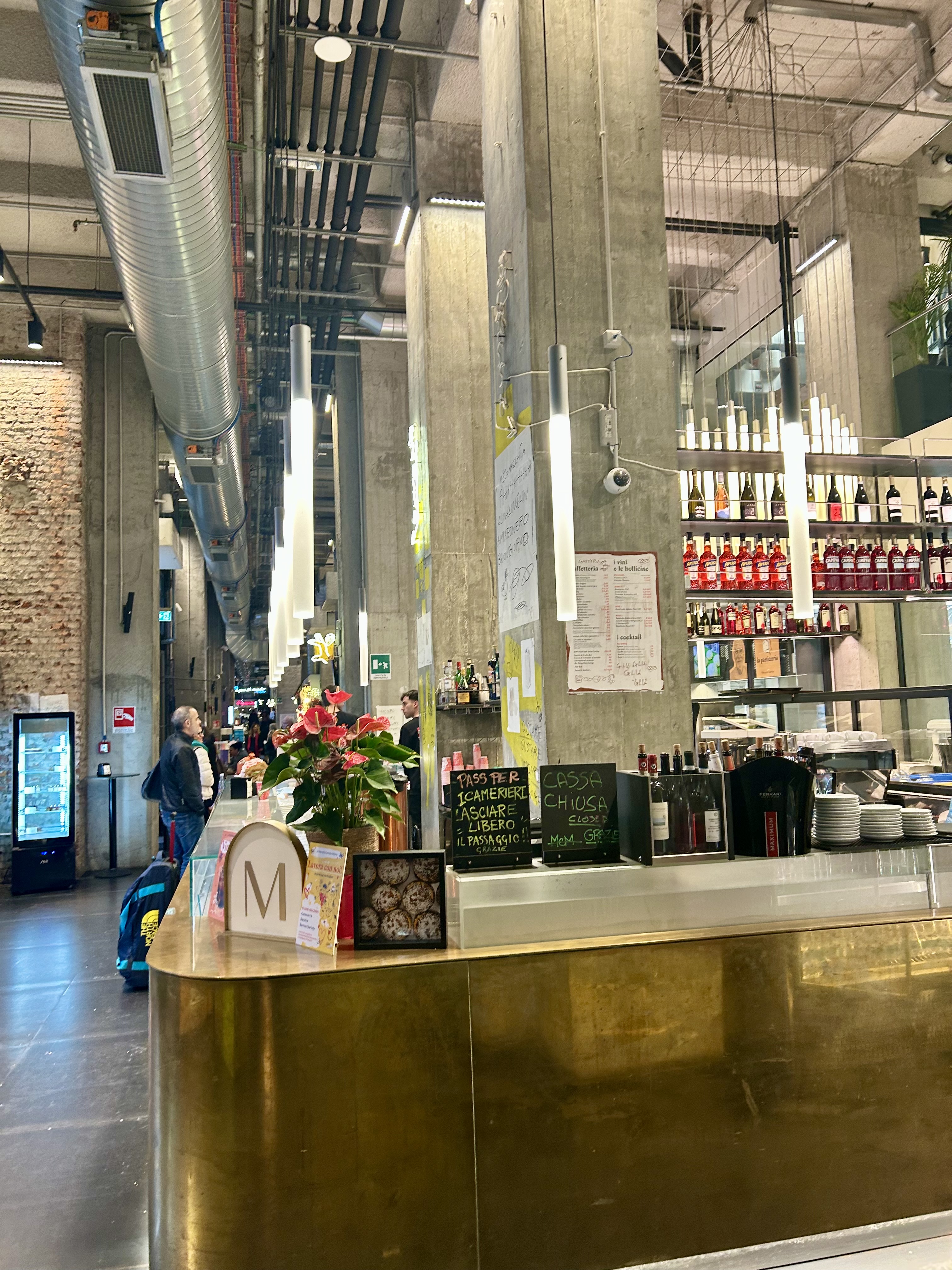 Outro local imperdível é o Mercato Centrale, localizado na Estação Central de Trens de Milão. O espaço é amplo e conta com 28 pontos de gastronomia que oferecem pratos italianos como massas, risotos, pizzas, trufas, queijos, carnes e saladas. Tem também raviolis chineses, fish bar e american barbecue. Além de uma enorme enoteca, oferece cervejas artesanais, doces, sorvetes e café. Os preços dos pratos são razoáveis. Como nosso hotel estava muito próximo à estação, todo dia passávamos pelo local. Aliás, na Estação de Trens é possível comprar itens de farmácia, supermercado, lojas de cosméticos e perfumes, entre muitos outros.