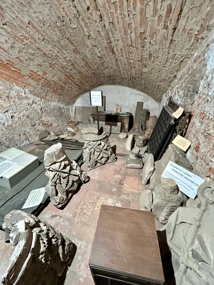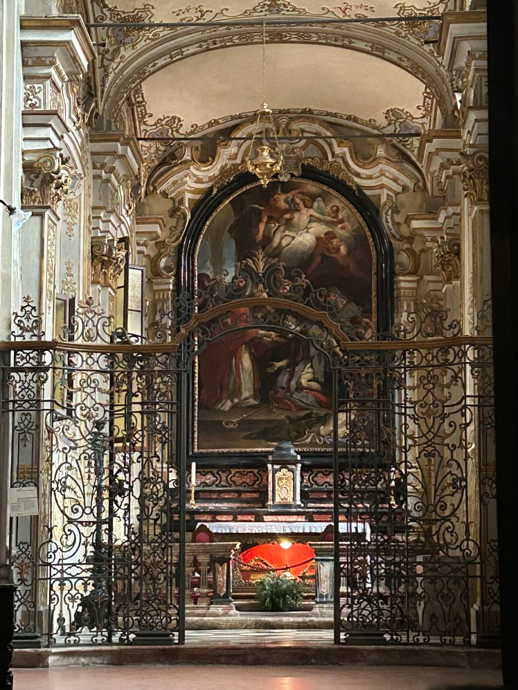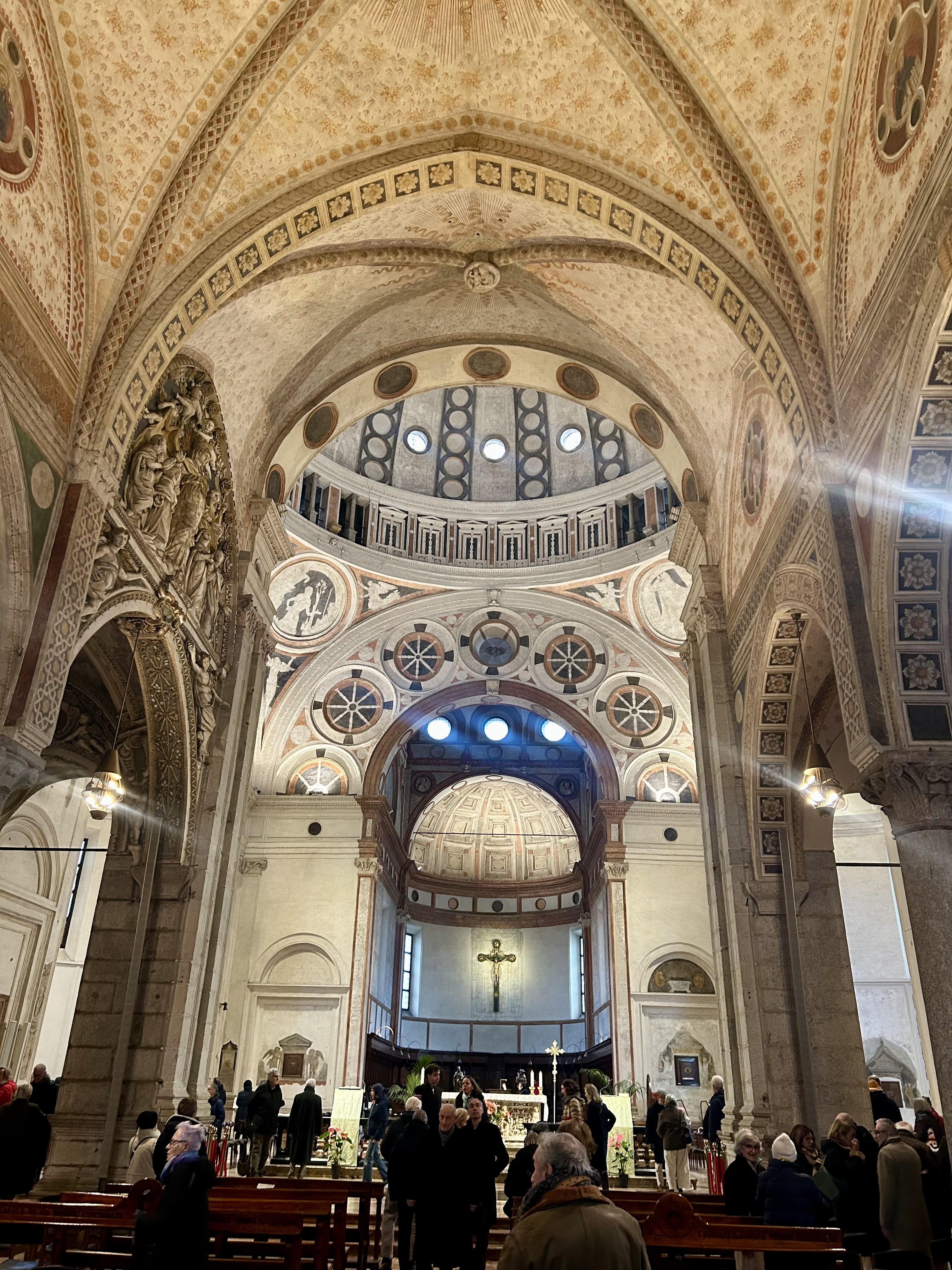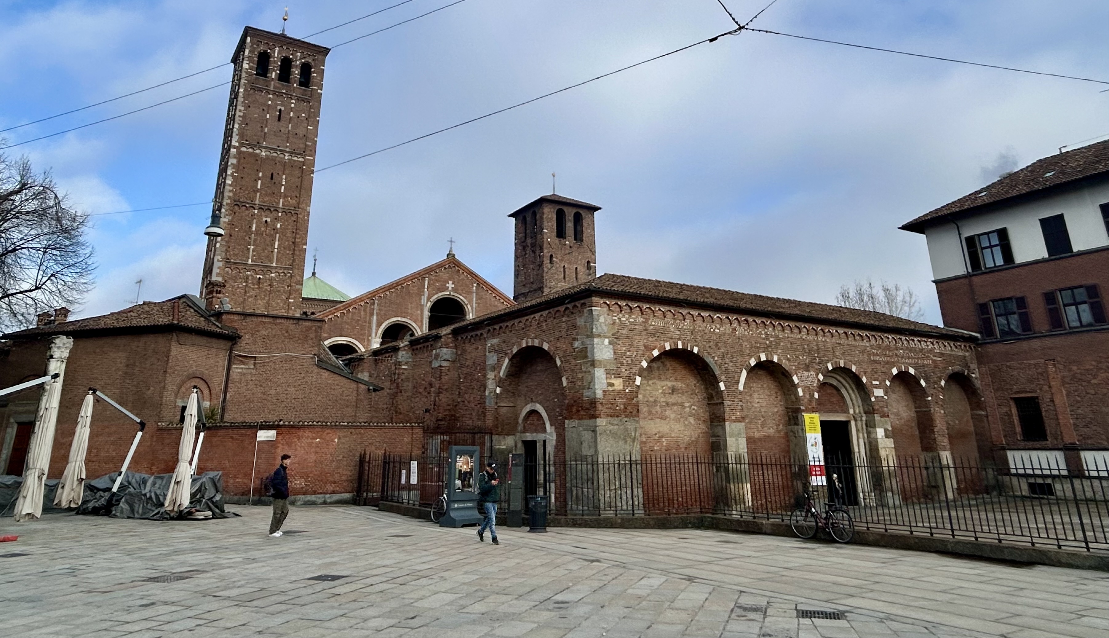 Do Arco da Paz, no Parque Sempione, caminhamos até um outro local que ainda não conhecíamos. A Basílica Santo Ambrósio é considerada a primeira igreja em estilo românico lombardo. Além de ser uma das primeiras igrejas de Milão, o prédio é um marco da arquitetura medieval e tem o nome do bispo que ordenou a sua construção entre 379 e 386. Foi reformada entre 1088 e 1099. A basílica tem as sepulturas de diversos mártires cristãos vítimas das perseguições romanas, além da sepultura do próprio Santo Ambrósio. O Altar Dourado com cenas esculpidas da vida de Cristo na frente e da vida de Ambrósio é simplesmente fantástico. Chama a atenção também o sarcófago romano no lado esquerdo da basílica.